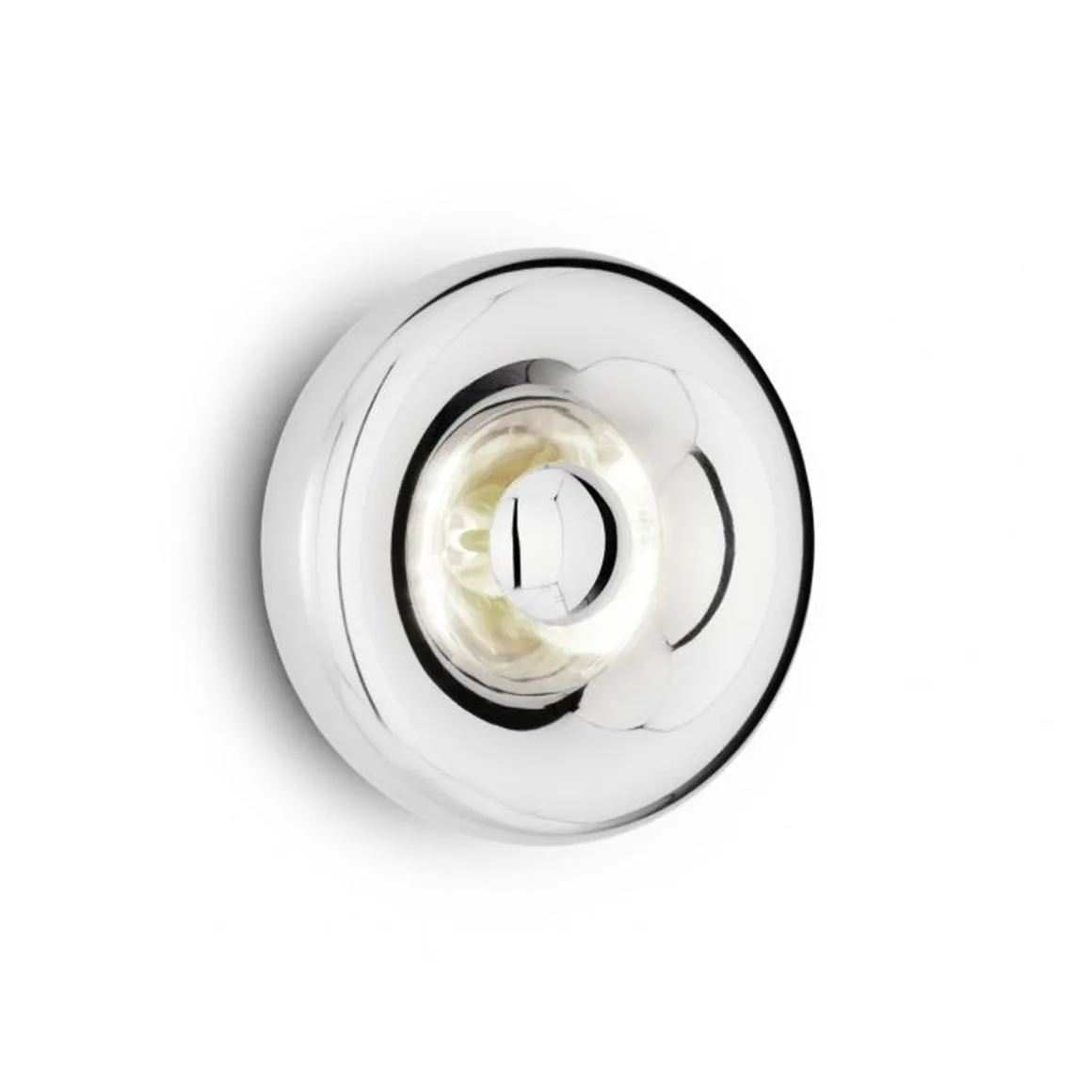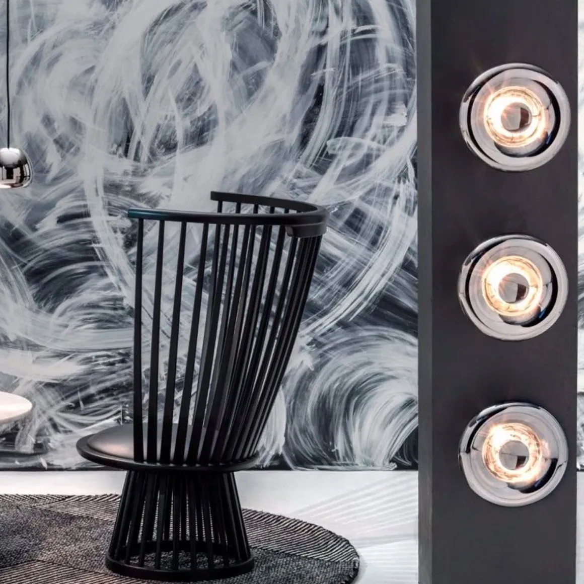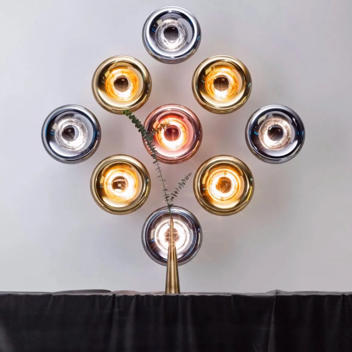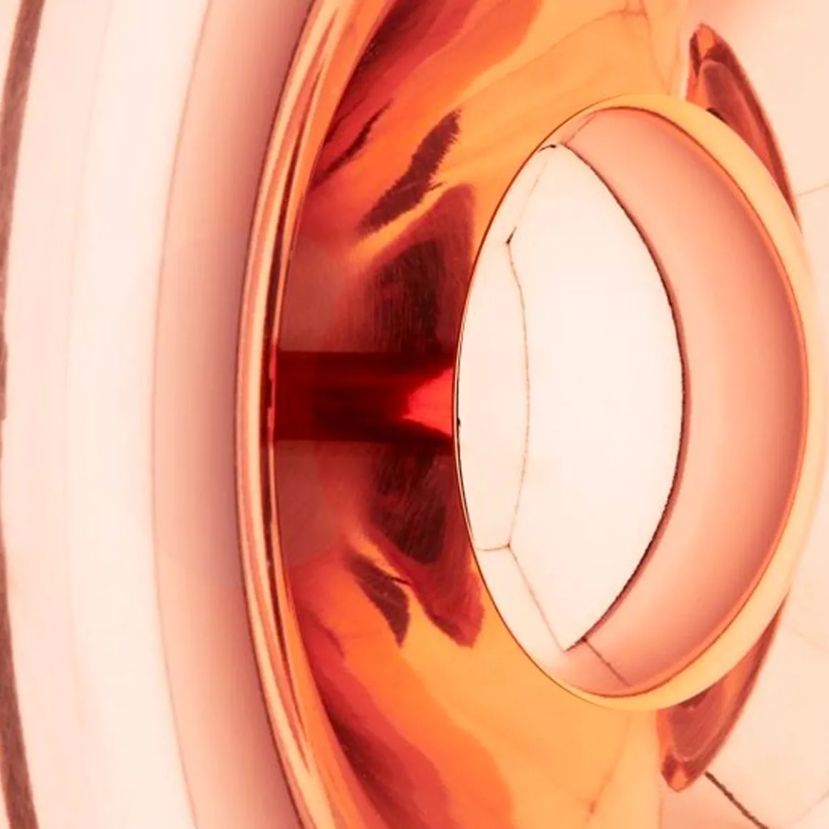 Le processus de création de Void est complexe. Découpée dans une feuille de métal pur, chaque lampe est pressée et filée, puis brasée à l’extrémité pour former une ombre à double paroi. La réflectivité très brillante obtenue par le lattage, le polissage et le soin des métaux de base est une finition audacieuse qui se retrouve dans Void.