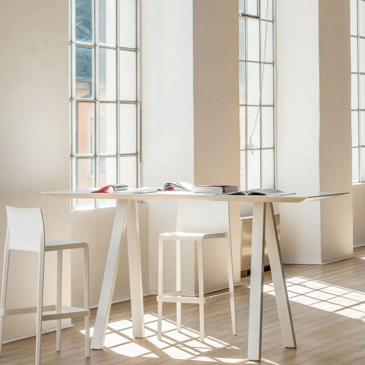 Le tabouret Volt, caractérisée par des volumes purs et des lignes nettes, maintient une attention au détail constante ainsi que la même technologie de production qui identifie la collection homonyme. Les dimensions contenues combinées avec des surfaces ergonomiques assurent fonctionnalité et confort. Les repose-pieds positionnés sur les trois côtés enroulent les pieds comme une bande et augmentent la résistance du tabouret en assurant son empilage. Réalisé en polypropylène renforcé avec fibres de verre et moulé par injection à l’aide de la technologie du gas air moulding.