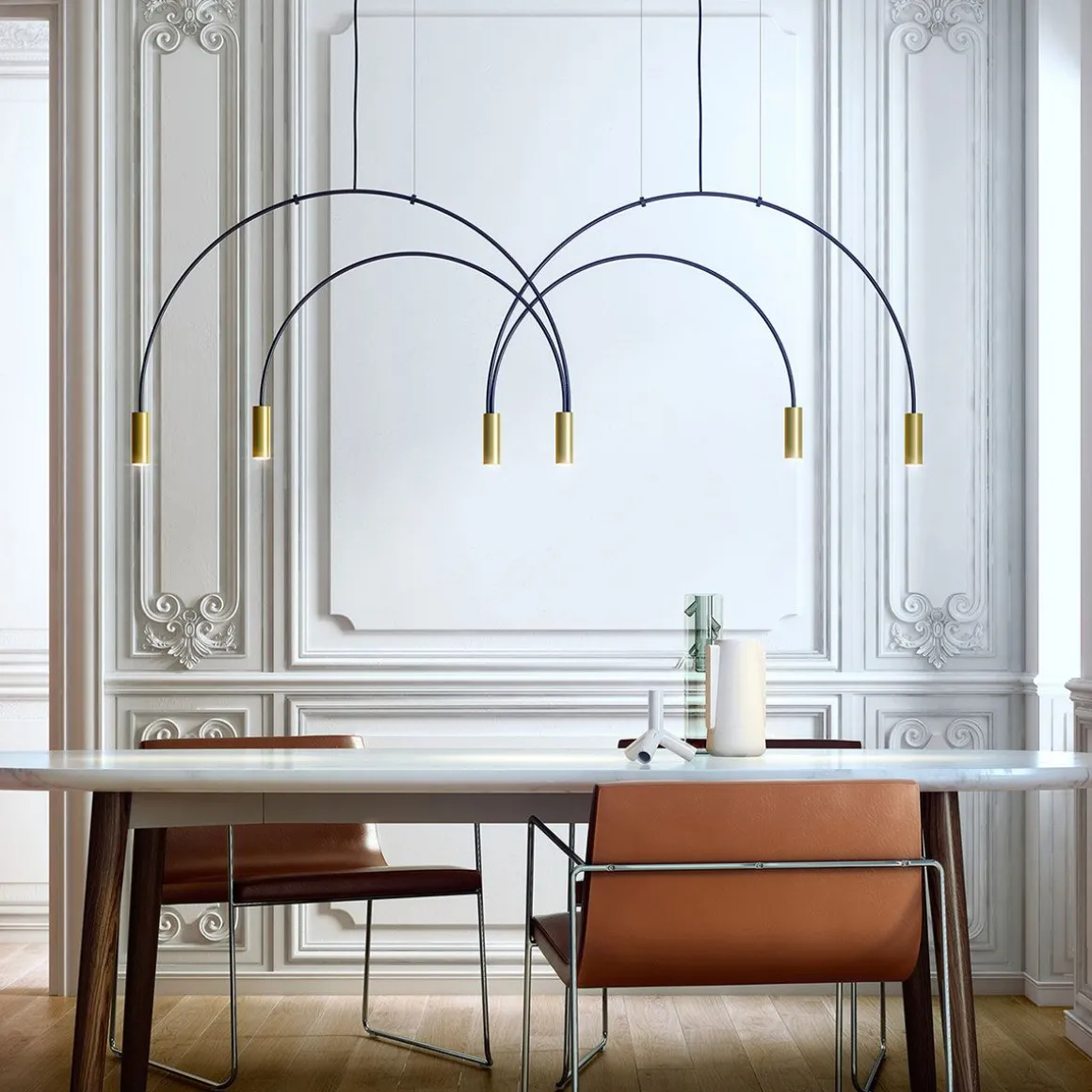 La suspension Volta de Estiluz possède une structure métalique incurvée, des têtes cylindriques en aluminium, ainsi que des diffuseurs en acrylique. Sa hauteur est ajustable et ses câbles sont en nylon transparents. Son style design trouvera sa place dans votre habitat.