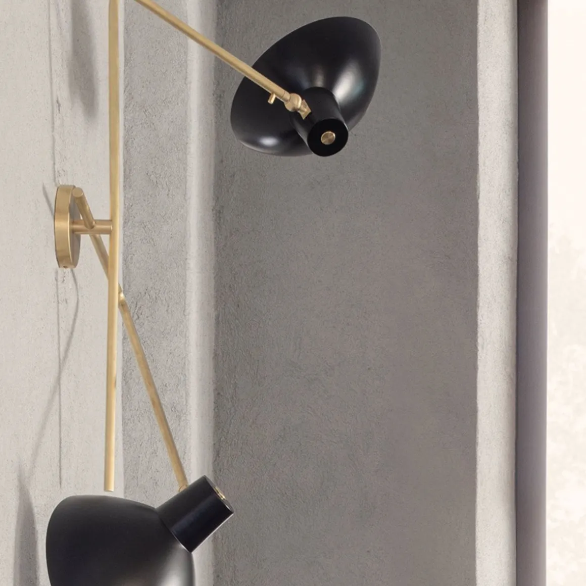 VV Cinquanta Twin de Astep par Vittoriano Viganó. VV Cinquanta Twin incarne l’élégance et la polyvalence. La VV Cinquanta est dotée d’une source lumineuse directe, élégante et polyvalente, pivotante et inclinable. Le modèle Twin est une élégante applique murale à deux bras. Montés sur un support en laiton, les deux bras en laiton s’étendent dans des directions opposées. Les larges réflecteurs caractéristiques peuvent être inclinés et tournés pour fournir simultanément un éclairage indirect et direct. Une applique sculpturale avec de multiples compositions lumineuses. Le réflecteur VV Cinquanta est en aluminium filé émaillé, disponible dans les couleurs originales Vittoriano Viganò.