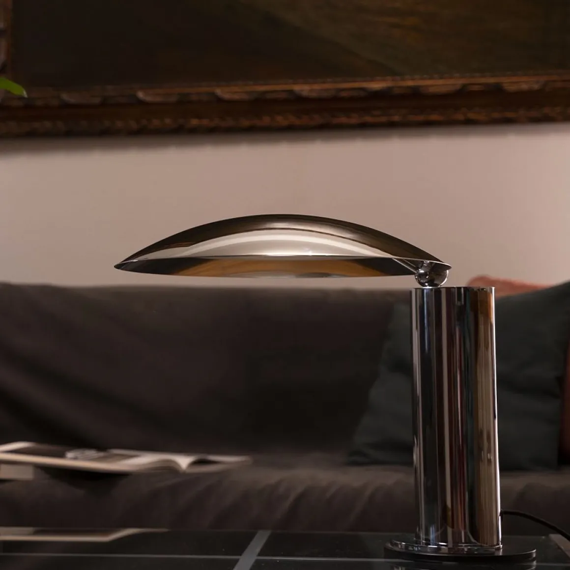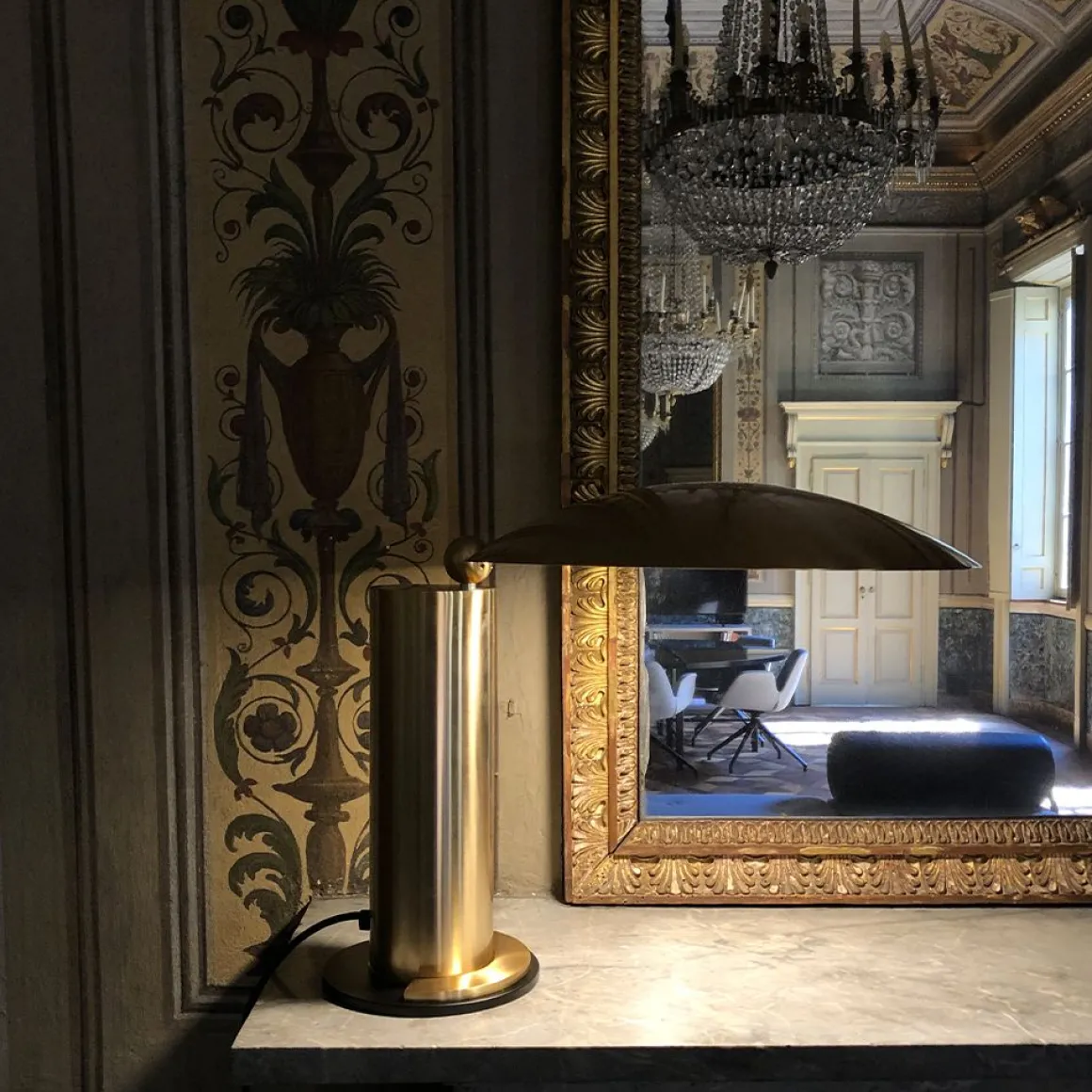 Lampe à poser en métal Washington créée par Jean-Michel Wilmotte en 1983 pour Lumen Center. Cette lampe nous charme par sa forme très originale qui rappelle comme un petit parasol qui fournirait une douce lumière. Adopter cette élégante lampe pour donner du caractère à votre intérieur.
