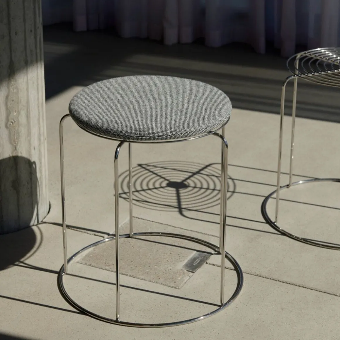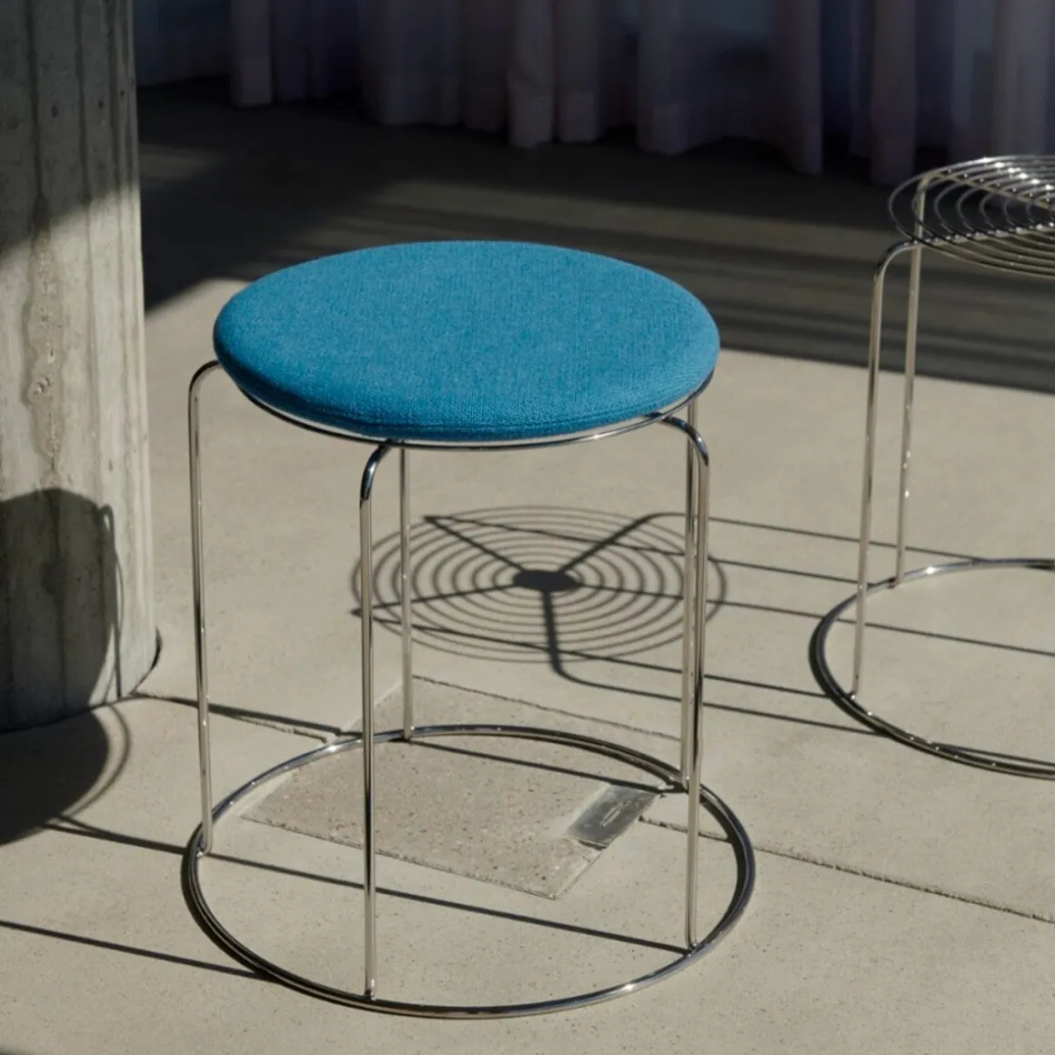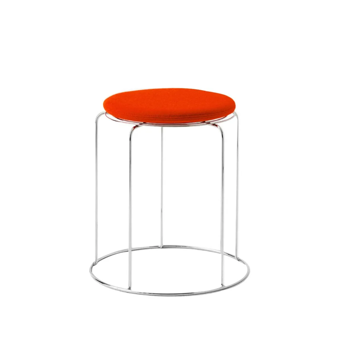 Wire Stool – VP11 de &Tradition par Verner Panton. Ce qui rend le tabouret Wire emblématique de Verner Panton, c’est l’utilisation de fil d’acier inoxydable pour créer une forme géométrique simple avec des motifs répétés, dans un tabouret empilable qui sert également de table d’appoint. Icône des archives destinée à devenir un objet de collection, la transparence aérienne en fait un design polyvalent adapté à une vaste gamme de décors. Pour ajouter une couche supplémentaire de confort chaque tabouret Wire est doté en option de coussins d’assise amovibles, en quatre couleurs, pouvant être fixés à l’aide d’un aimant discret.