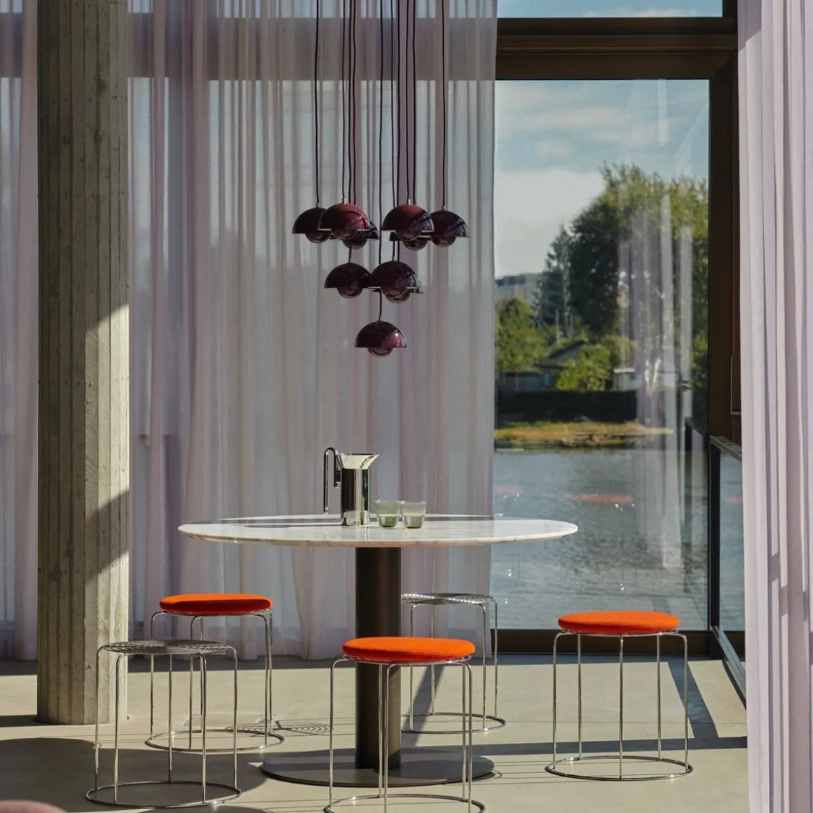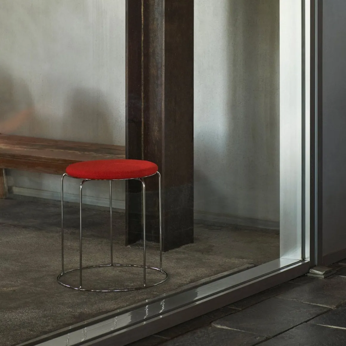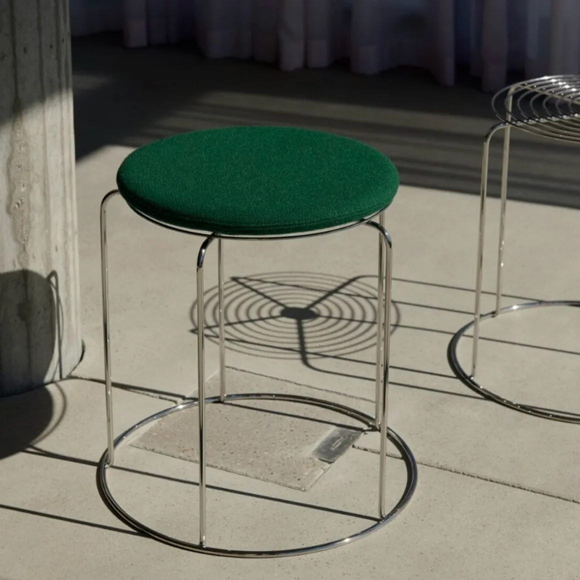 Wire Stool – VP11 de &Tradition par Verner Panton. Ce qui rend le tabouret Wire emblématique de Verner Panton, c’est l’utilisation de fil d’acier inoxydable pour créer une forme géométrique simple avec des motifs répétés, dans un tabouret empilable qui sert également de table d’appoint. Icône des archives destinée à devenir un objet de collection, la transparence aérienne en fait un design polyvalent adapté à une vaste gamme de décors. Pour ajouter une couche supplémentaire de confort chaque tabouret Wire est doté en option de coussins d’assise amovibles, en quatre couleurs, pouvant être fixés à l’aide d’un aimant discret.