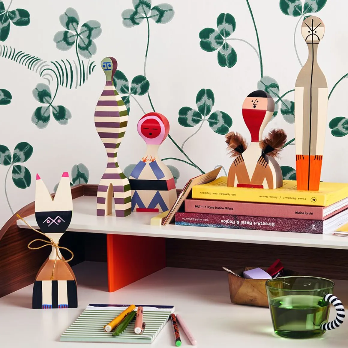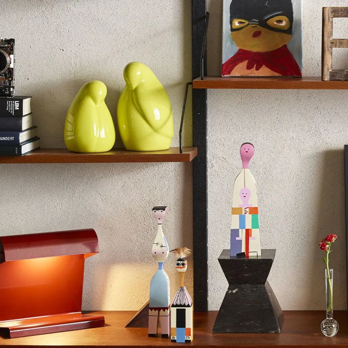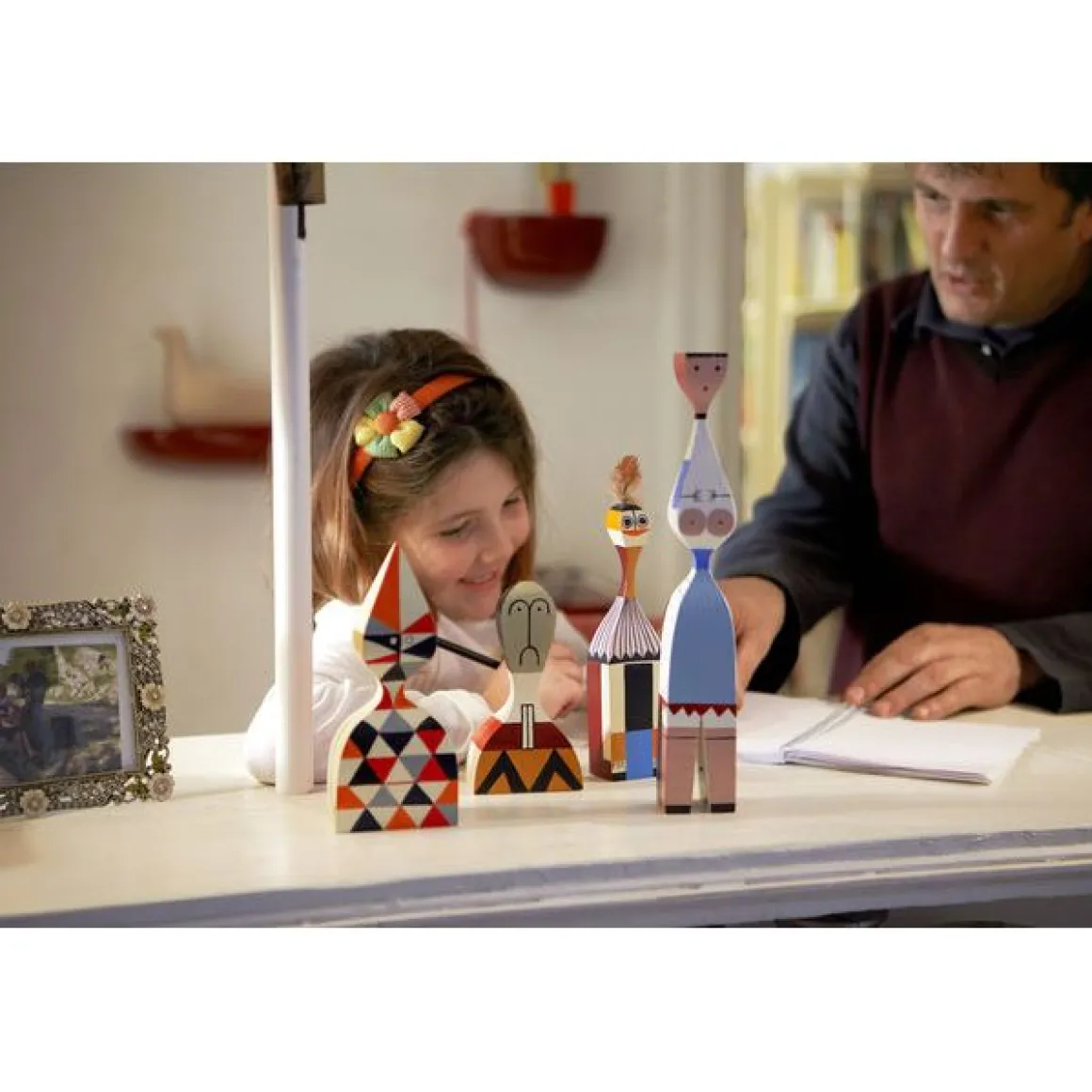 Le designer Alexander Girard compte parmi les personnalités marquantes de l’histoire du design américain de l’après-guerre, au même titre que George Nelson et Charles et Ray Eames. Le design textile était au centre de sa créativité aux multiples facettes, et son étude intensive de l’art populaire d’Amérique du Sud, d’Asie et de l’Europe de l’Est représentait pour lui une source d’inspiration essentielle. Entre l’objet de décoration et le jouet, les Wooden Dolls sont désormais disponibles au grand public, pour enrichir votre aménagement intérieur. Les Wooden Dolls font partie de la collection du Vitra Design Museum, reconnnues internationalement, et exposées dans de nombreux musées et galeries de design. Incontournables, ces petites poupées fabriquées et peintes à la main en bois de pin massif, sont vendues dans leur écrin en bois imprimé. Les Wooden Dolls vous représentent la fantaisie, l’imagination, l’humour et l’amour et apporteront une touche ludique et design à votre intérieur !
