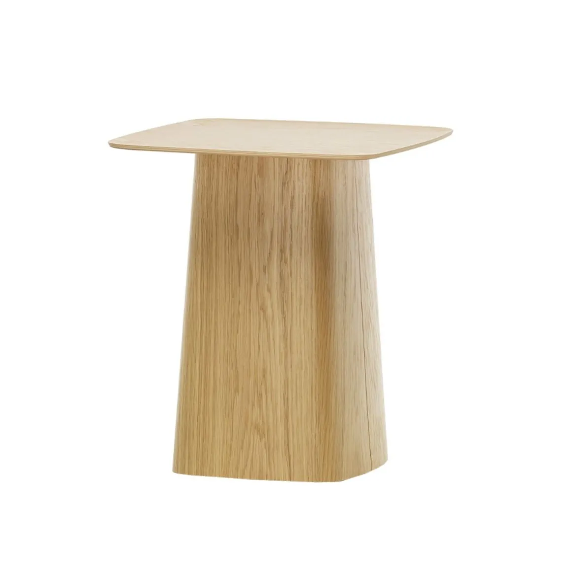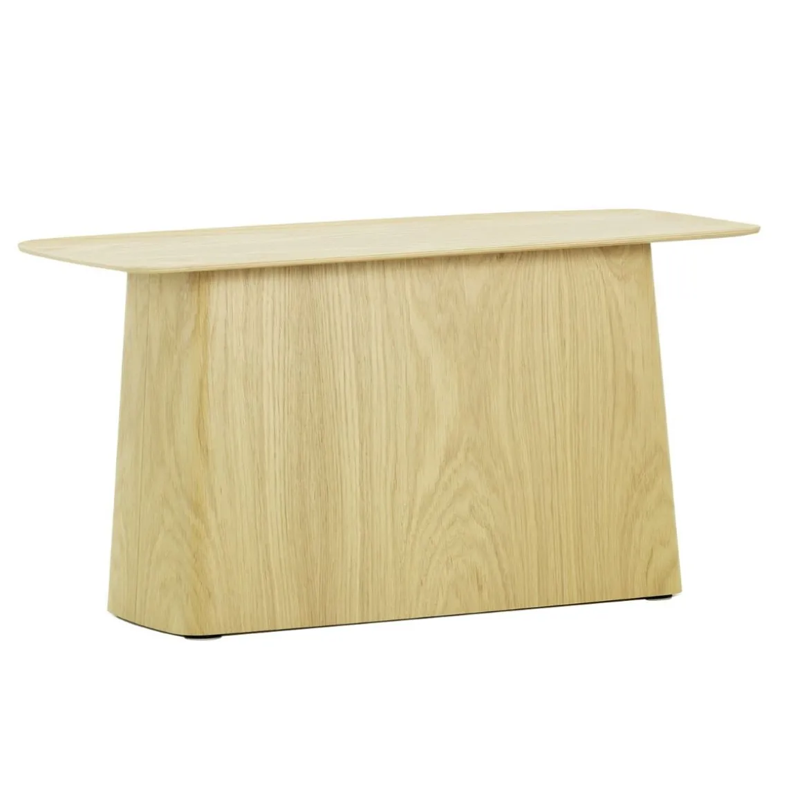 De par leur design, les Wooden Side Tables s’apparentent aux Metal Side Tables conçues en 2004 par Ronan et Erwan Bouroullec pour Vitra. Comme ces dernières, les petites tables d’appoint en bois tirent leur charme du contraste entre les minces plateaux de table et les pieds volumineux en forme de socle. Toutefois, les plateaux en contreplaqué moulé sont légèrement bombés sur le bord, ce qui leur confère une esthétique élégante presque japonaise.