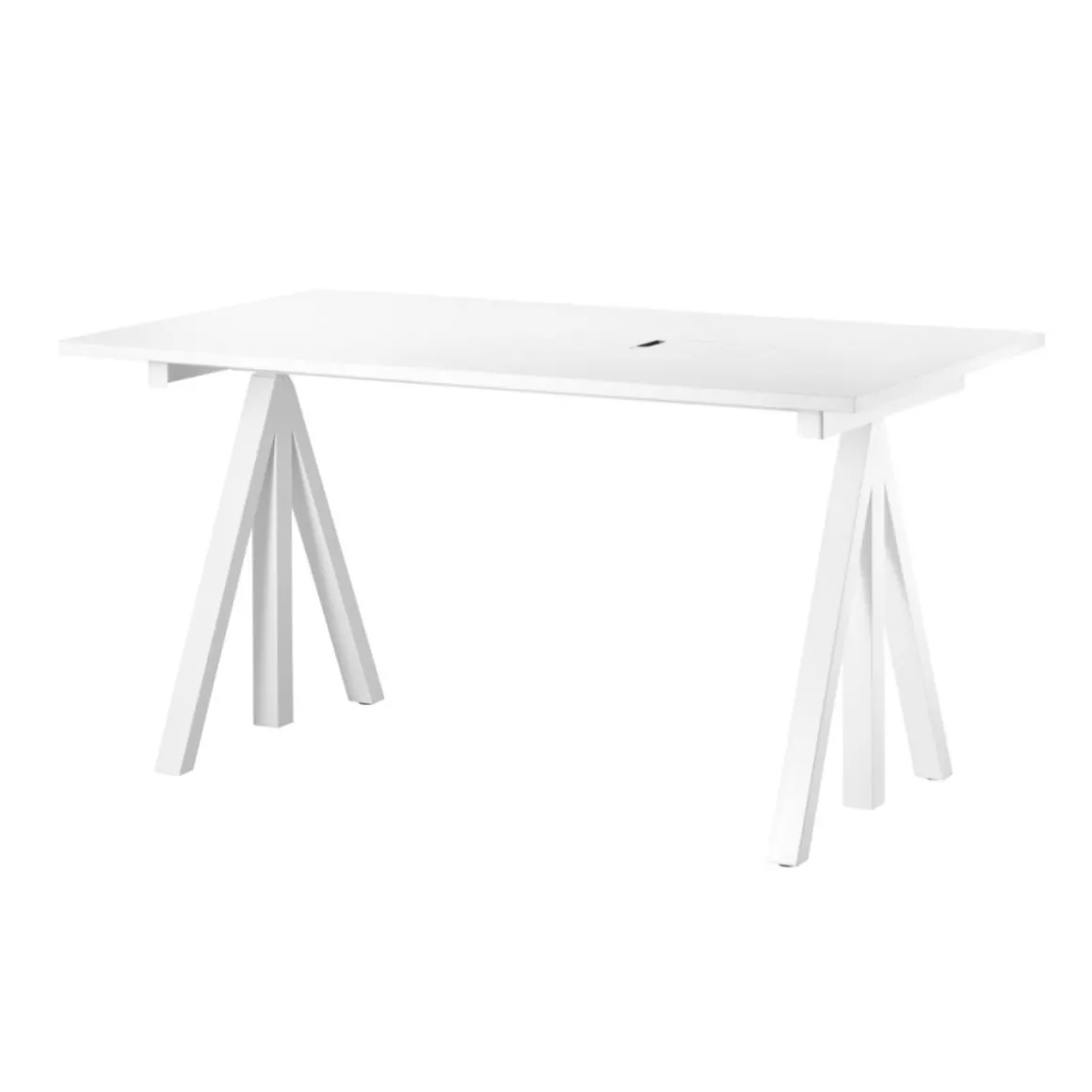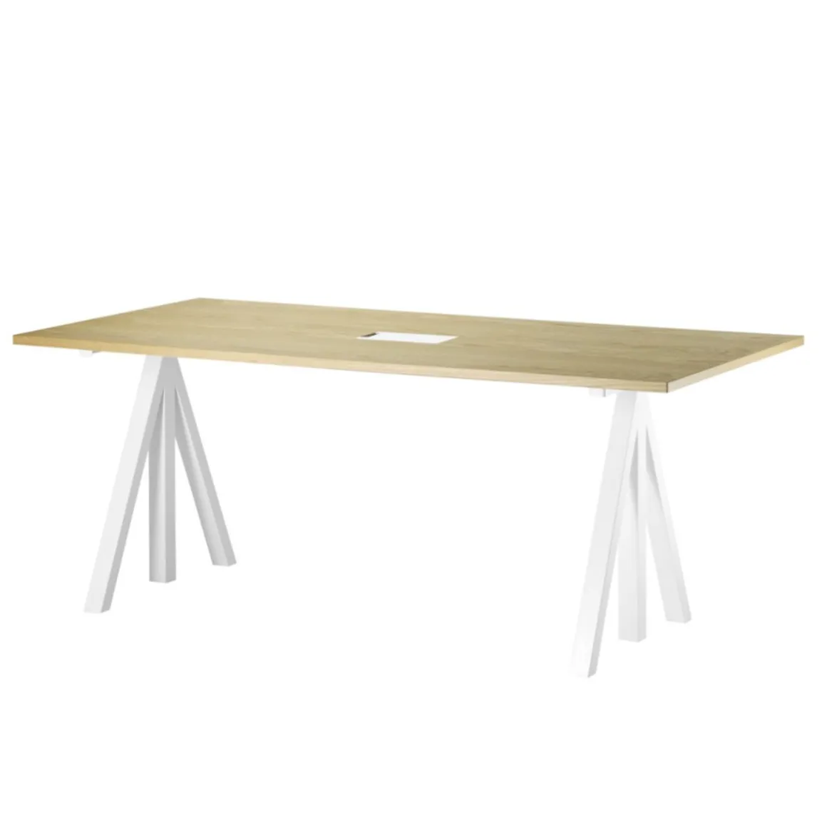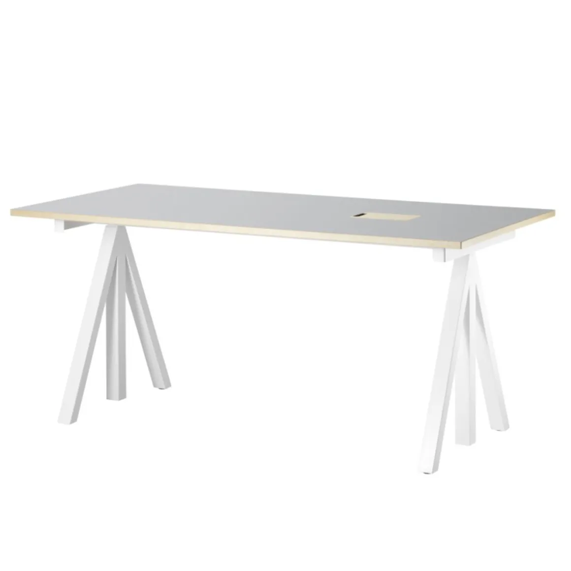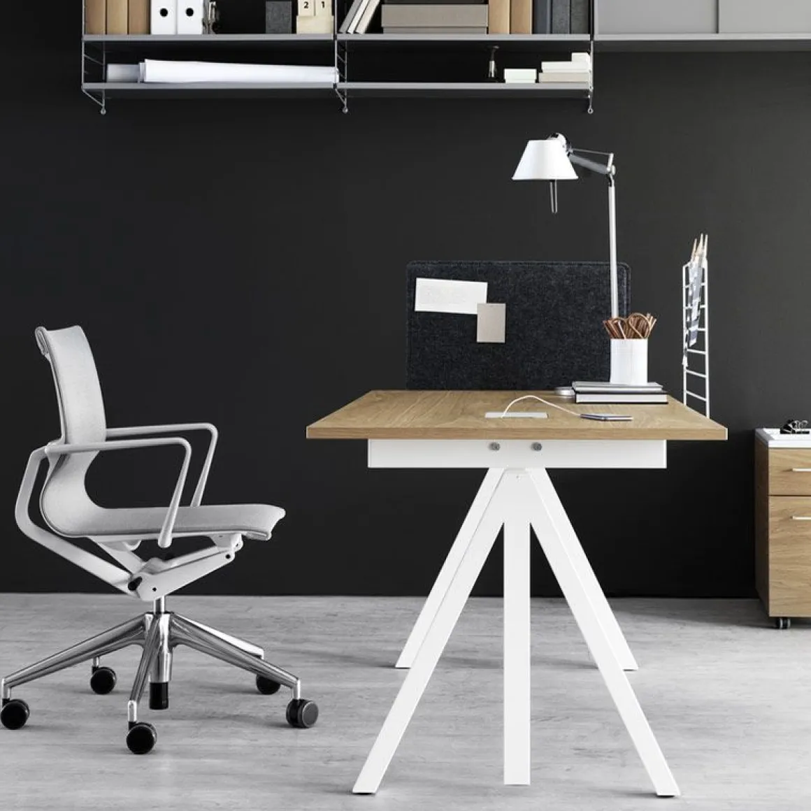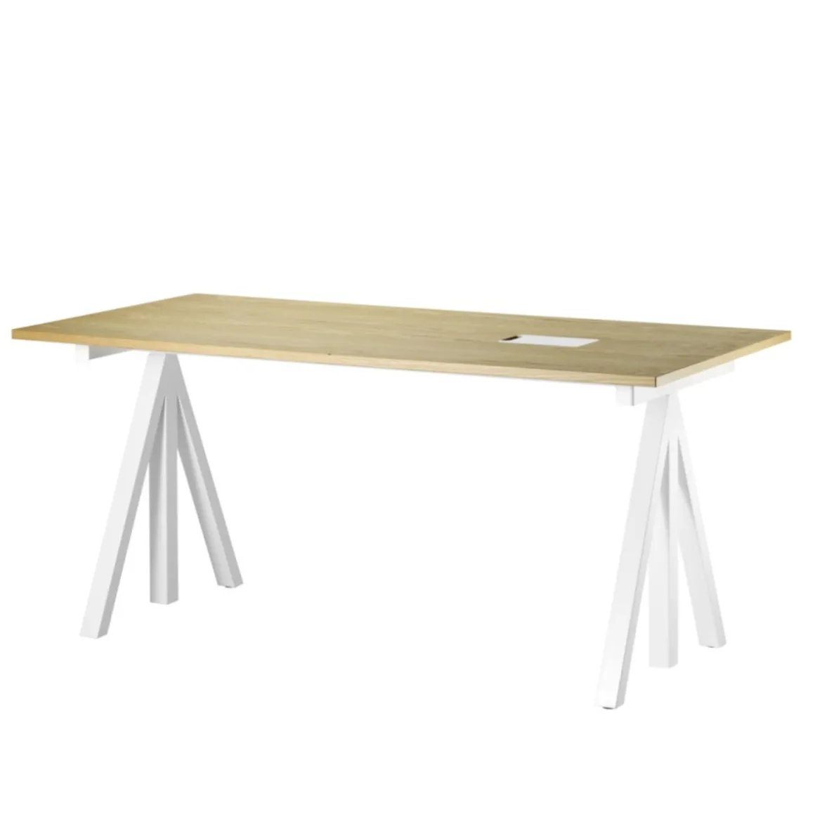 Avec son design unique, le bureau de travail de Works permet de créer des espaces de travail flexibles. Le bureau de travail se compose d’un cadre de table fixe et d’un bureau de travail et la hauteur peut être ajustée de 1 cm. Les bureaux de 78 cm de profondeur sont disponibles en trois largeurs : 120, 140 et 160 cm. Le bureau de travail avec une profondeur de 90 cm est destiné à une table de réunion ou à un espace de travail plus grand et est donc disponible en une seule largeur, 180 cm. La hauteur du cadre (y compris le bureau) est de 72,5 cm et s’adapte à tous les bureaux.