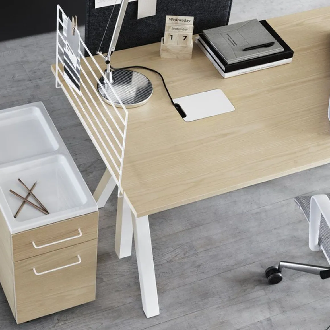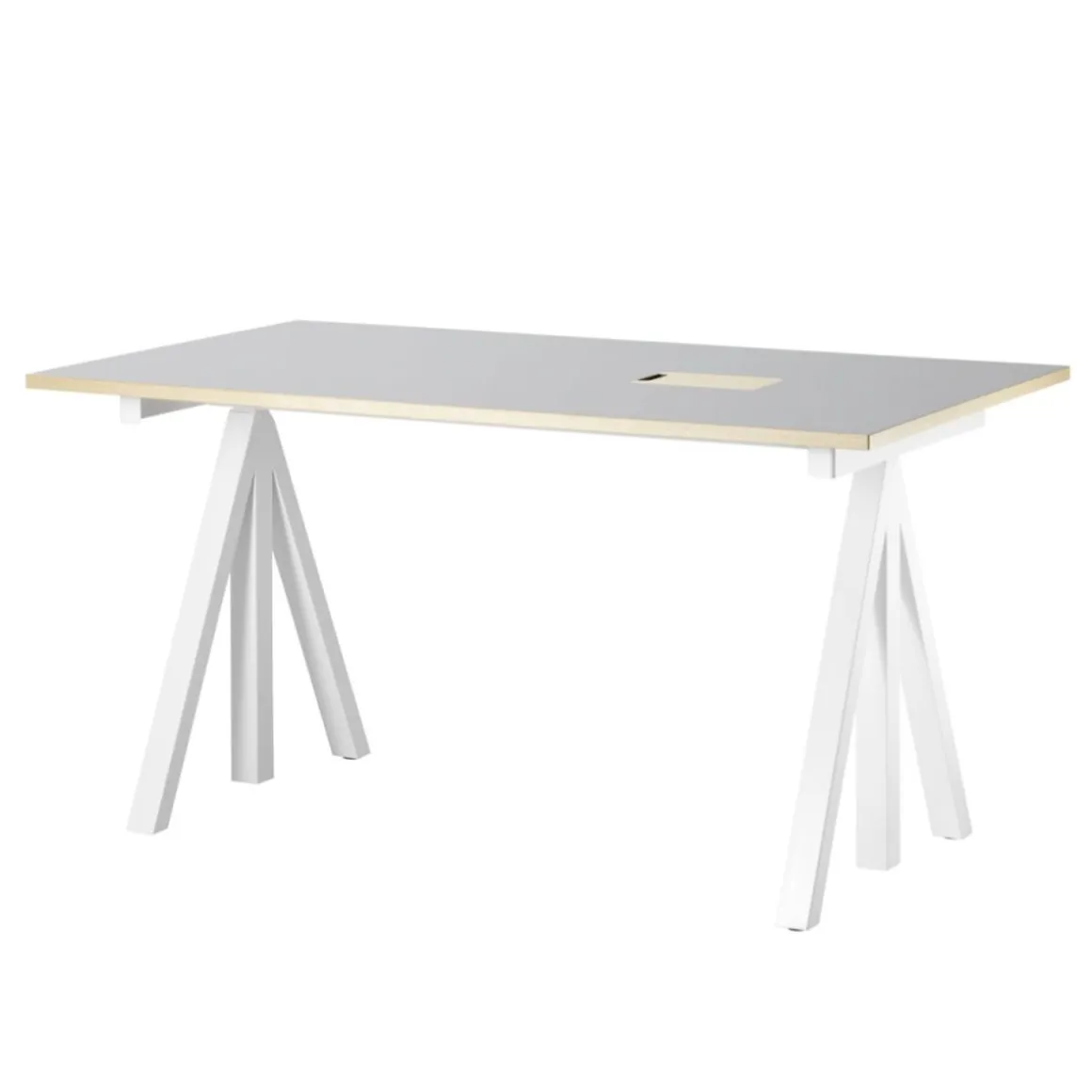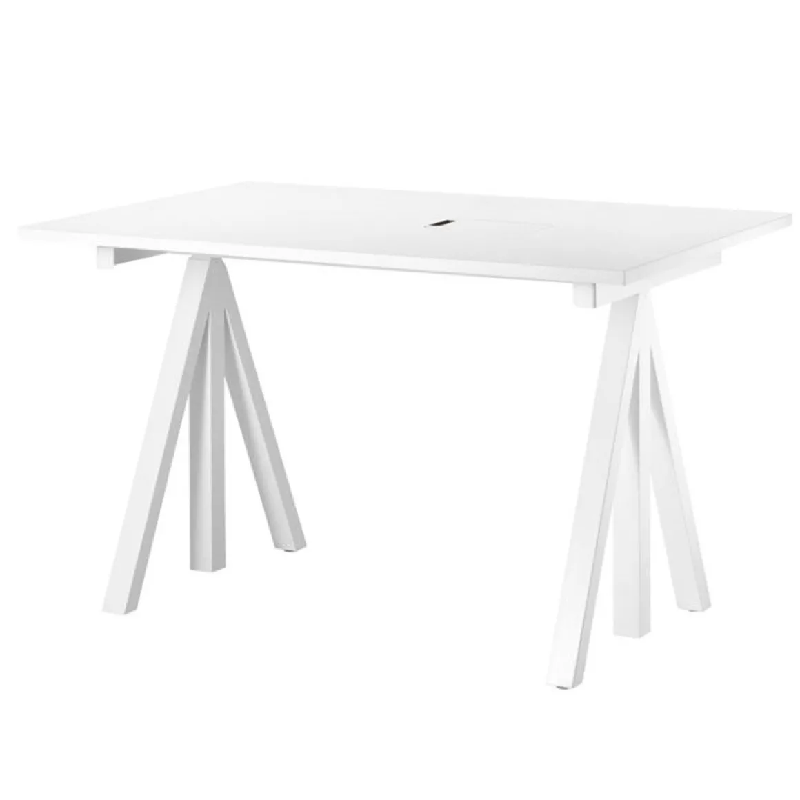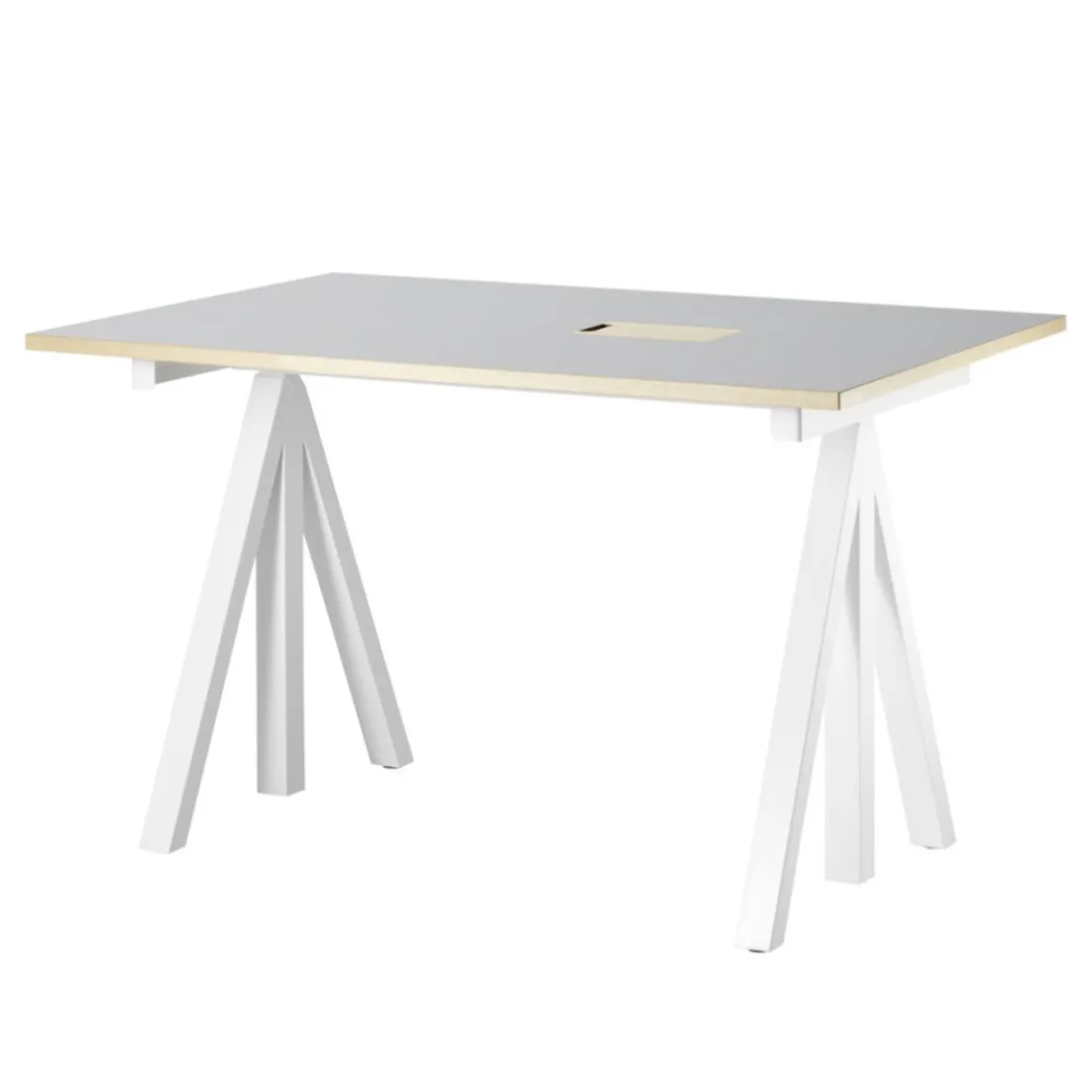 Avec son design unique, le bureau de travail de Works permet de créer des espaces de travail flexibles. Le bureau de travail se compose d’un cadre de table fixe et d’un bureau de travail et la hauteur peut être ajustée de 1 cm. Les bureaux de 78 cm de profondeur sont disponibles en trois largeurs : 120, 140 et 160 cm. Le bureau de travail avec une profondeur de 90 cm est destiné à une table de réunion ou à un espace de travail plus grand et est donc disponible en une seule largeur, 180 cm. La hauteur du cadre (y compris le bureau) est de 72,5 cm et s’adapte à tous les bureaux.