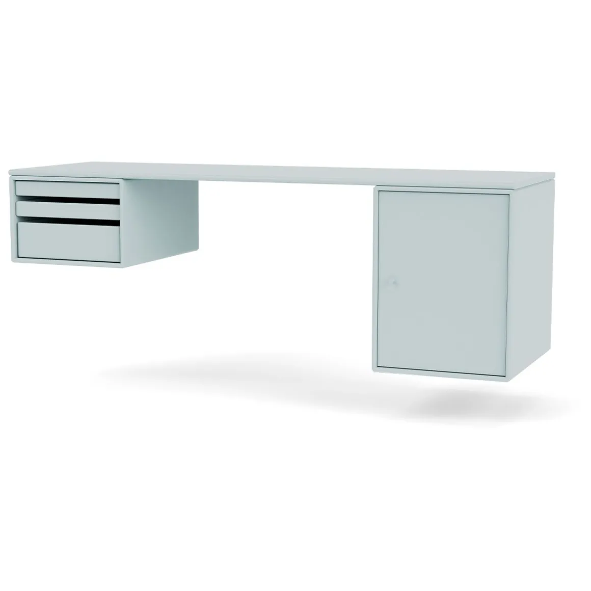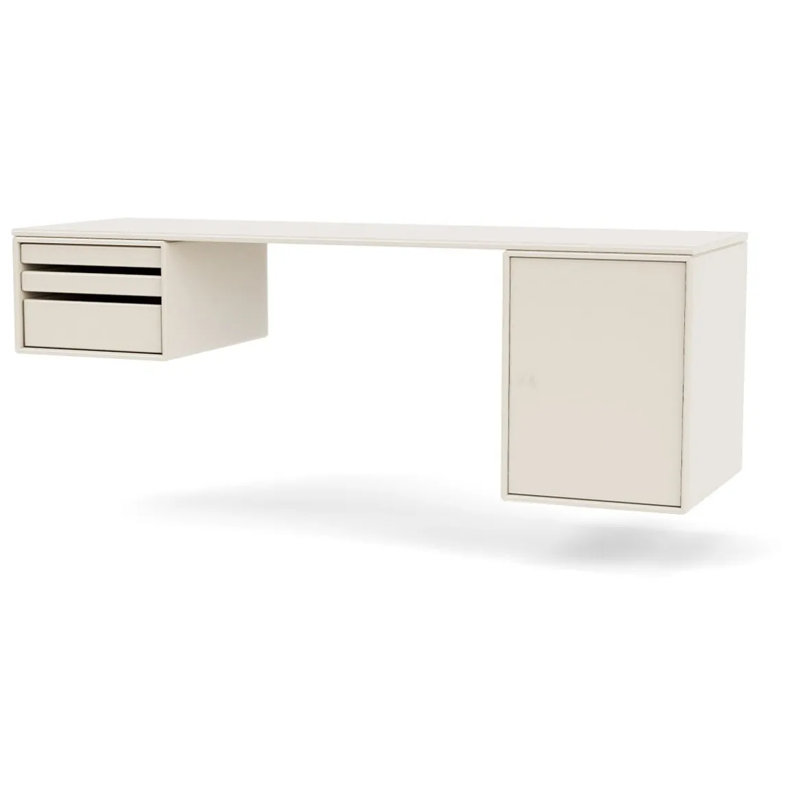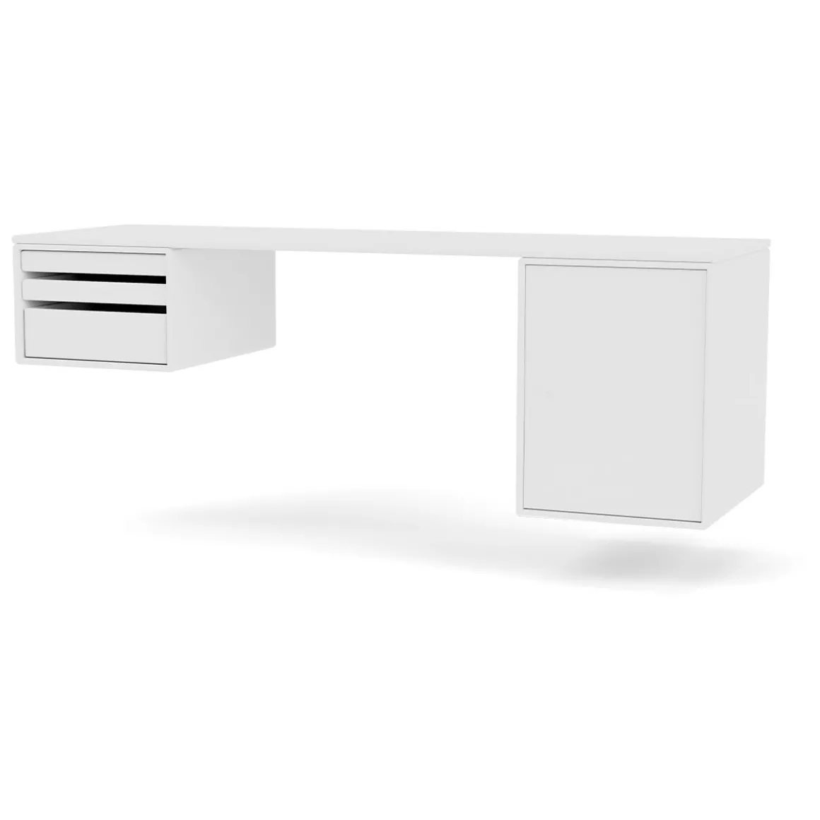 WORKSHOP est un bureau oblong pour le bureau à domicile avec un espace pour les jambes entre deux modules de rangement sur les côtés sous le panneau supérieur. WORKSHOP dispose d’un côté de modules de plateau qui peuvent être entièrement retirés du module. De l’autre côté se trouve une armoire plus petite pour ranger des livres ou des fournitures de bureau.