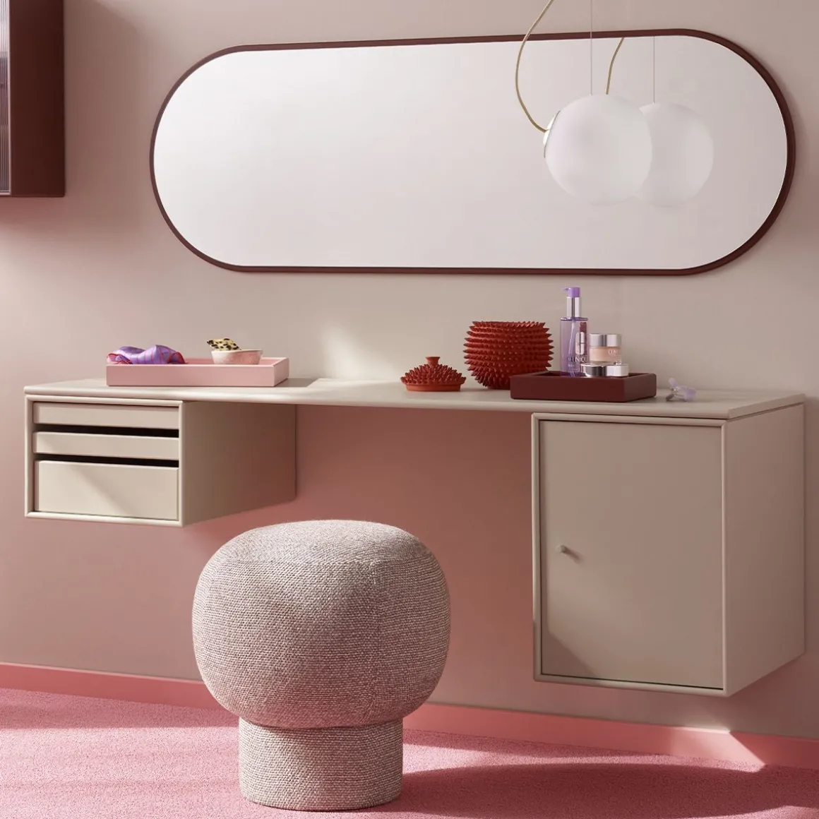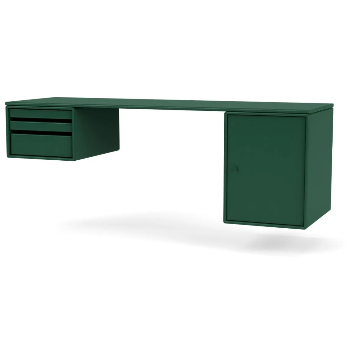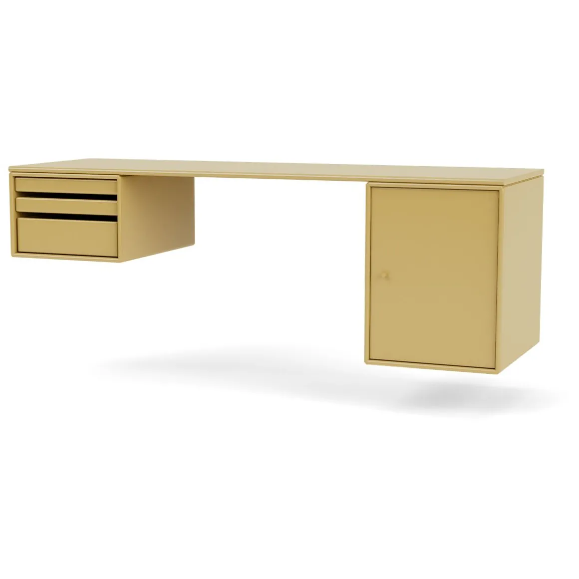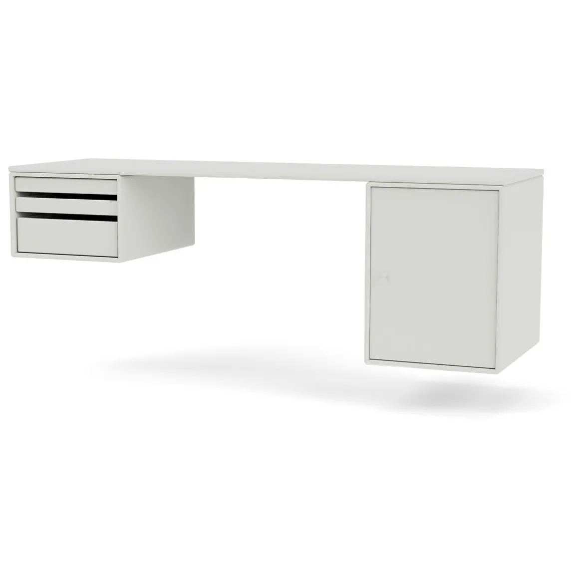 WORKSHOP est un bureau oblong pour le bureau à domicile avec un espace pour les jambes entre deux modules de rangement sur les côtés sous le panneau supérieur. WORKSHOP dispose d’un côté de modules de plateau qui peuvent être entièrement retirés du module. De l’autre côté se trouve une armoire plus petite pour ranger des livres ou des fournitures de bureau.