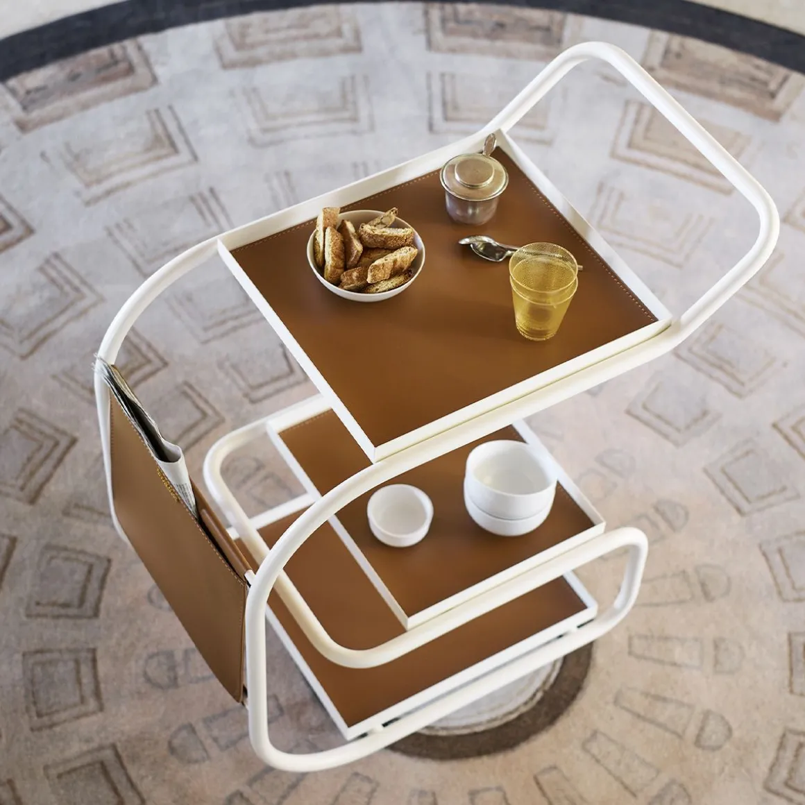 Un chariot , un bar mobile , un poste de travail indépendant … Zenzero est surprenant, épicé, engageant, c’est l’hospitalité sur roues. Trois plateaux en acier reposent sur une structure sinueuse en tubes d’acier minces, une poche pratique en cuir régénéré trouve place sur le devant tandis que la poignée et les roulettes pivotantes facilitent encore plus le déplacement d’un produit nomade par définition. Conçu pour contenir et transporter des bouteilles et des verres, des tasses et des pichets (ou tout ce que l’imagination dicte), Zenzero sait se transformer en un poste de travail complètement indépendant pour préparer et servir – également grâce aux deux plateaux amovibles confortables – partout où il y a un besoin. Pratique au petit-déjeuner, divertissante à l’apéritif, élégante pour l’apéro, Zenzero imaginée par Samer Alameen est à l’aise dans tous les contextes où le bien-vivre est une valeur autant qu’un plaisir. Immédiate et captivante, grâce à ses trois finitions – minimale en blanc , impeccable en vert foncé , sophistiquée en feuille d’or – elle peut s’intégrer dans n’importe quel environnement. Outil de travail parfait pour garantir sécurité et intimité dans les salons les plus exclusifs ou les restaurants les plus raffinés, il peut être un accessoire surprenant pour les studios professionnels ou les salons privés. Avec son être transversal, Zenzero saura enivrer même les connaisseurs les plus exigeants et experts.