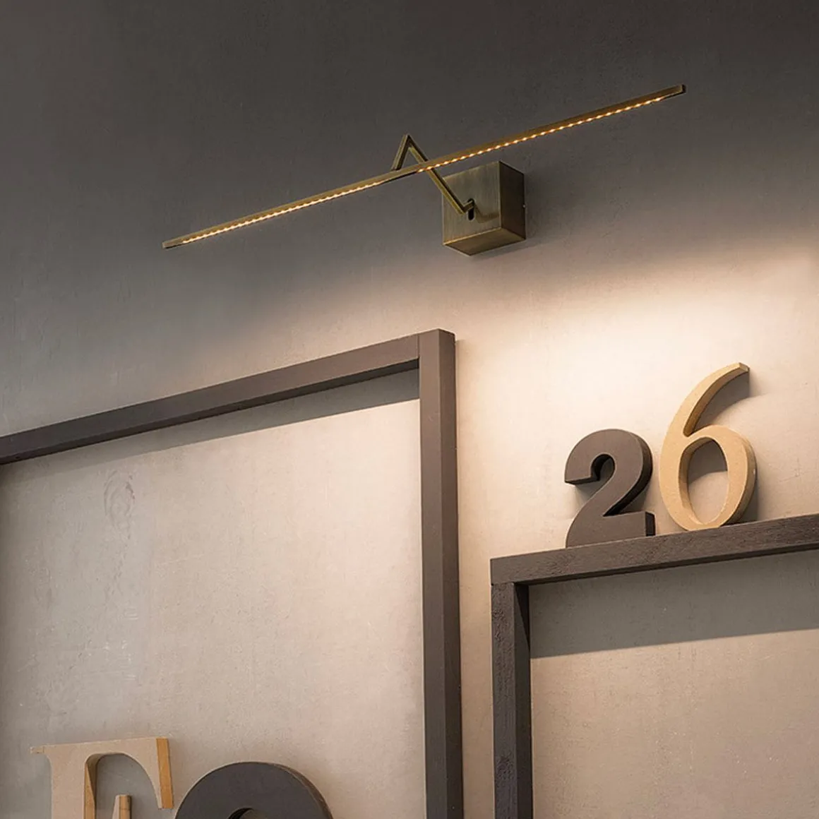 Zeta de Icone par Marco Pagnoncelli. Applique à émission de lumière directe/indirecte, réalisée en laiton tréfilé 7x7mm. Eclairage par micro-rubans LED à haut rendement. Driver inclus.