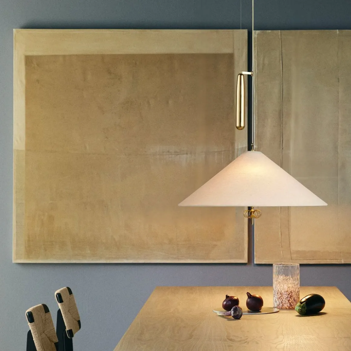 1967 de Gubi. Connu par beaucoup comme « l’homme qui a illuminé la Finlande », le légendaire designer et métallurgiste Paavo Tynell est l’une des figures marquantes du design industriel du XXe siècle. Conception Tynell classique des années 1950, la suspension 1967 développe le langage de conception développé en 1948 pour la suspension 1965. Le 1967 se caractérise par un abat-jour conique en toile qui dégage une lumière ambiante chaleureuse, avec la quincaillerie en laiton emblématique de Tynell ajoutant une expression subtile et haut de gamme.