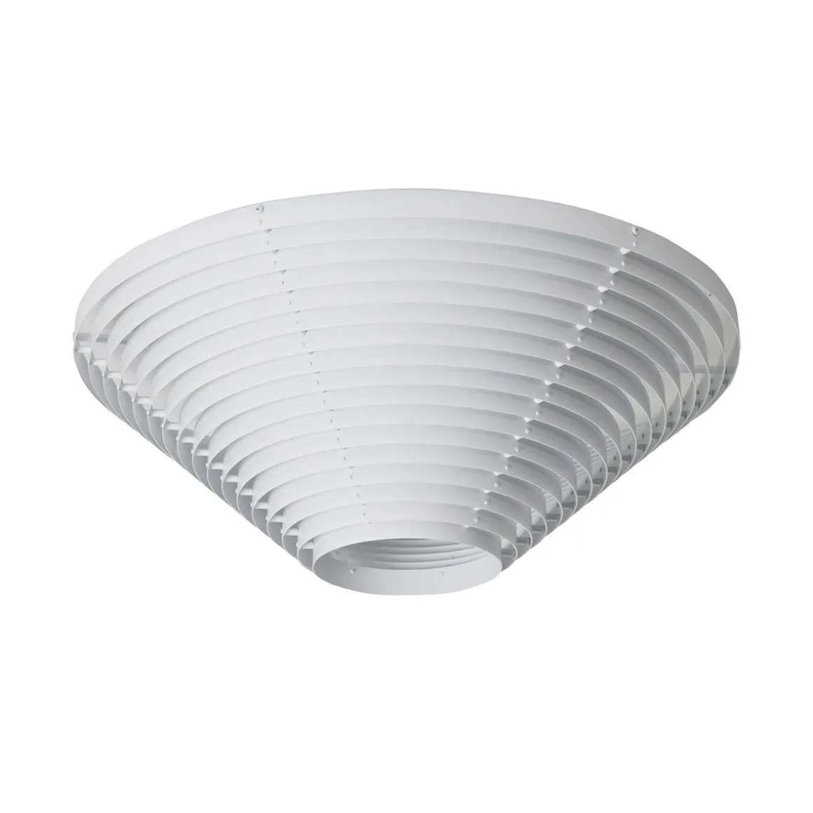 Ce design intemporel et élégant est populaire dans les bâtiments publics et les maisons privées. Avec les échos structurels des autres luminaires design d’Alvar Aalto, son abat-jour se compose de minces feuilles de métal disposées en une formation circulaire décalée. Conçu comme un plafonnier, l’A622 se monte directement sur le plafond et peut être allumé via un interrupteur mural. Créé pour l’Institut national des pensions d’Helsinki en 1953, le plafonnier A622 projette une lumière douce et diffuse.