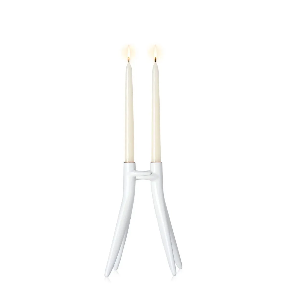 Abbracciaio représente la fusion de deux silhouettes en aluminium qui, mises l’une en face de l’autre, se transforment en une étreinte amoureuse. Les deux structures sont accrochées de manière à garantir la stabilité de l’objet. Élégant et poétique, Abbracciaio est prévu pour deux bougies. Il est réalisé en aluminium poli et décliné dans différentes couleurs.