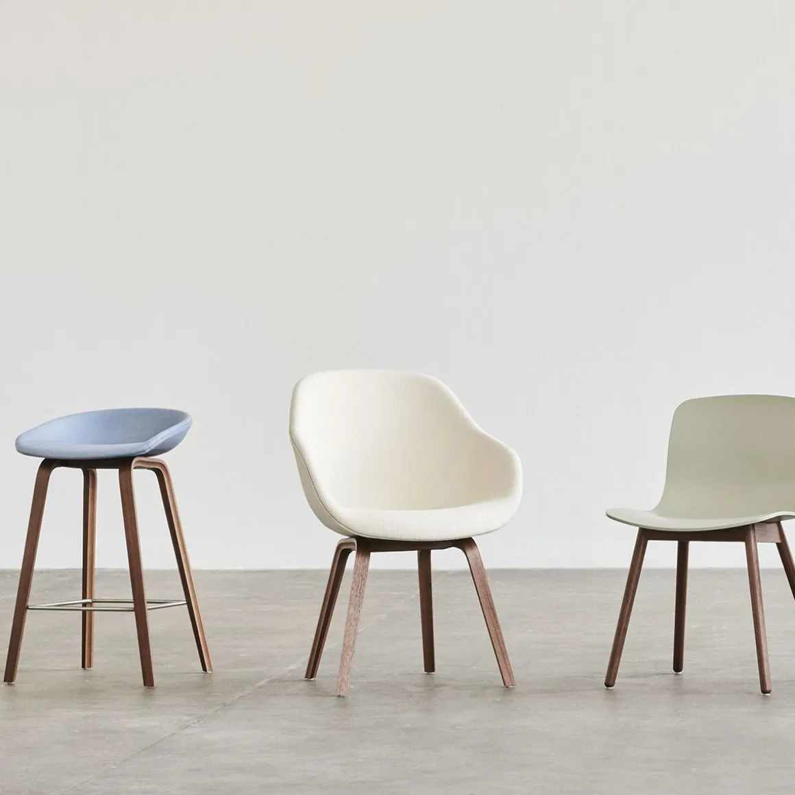 About a chair AAC 123 – Noyer de Hay par Wee Helling. Doté d’un cadre en bois avec des pieds effilés élégants, l’AAC 123 a une esthétique intemporelle et organique. Conservant le même dossier haut et le même siège généreux qui caractérisent la série, cette conception présente une base solide avec des pieds inclinés légèrement inclinés vers l’extérieur pour une stabilité optimale. La base en chêne est disponible en différentes finitions et la coque est disponible dans une variété d’options de rembourrage, offrant une multitude de combinaisons de design qui confèrent à cette série une polyvalence dans un large éventail de contextes d’entreprise, publics et privés.