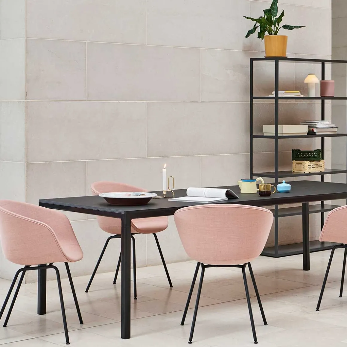 About a Chair AAC 27 pieds noirs de Hay par Hee Welling. La série About est la série de meubles la plus polyvalente de HAY. Tout a commencé avec une chaise et s’est épanoui en une série au potentiel pratiquement illimité. Avec la série About, Hee Welling a prouvé qu’une seule idée forte peut contenir une multitude d’options de développement. Aujourd’hui, la série comprend des chaises de salle à manger et de conférence, des chaises de bureau, des tabourets de bar, des chaises longues, des tables, un tabouret de pied et, comme dernier ajout, un canapé, et elle est également parfaite pour les espaces privés et publics. La série About est un véritable pragmatiste, capable de se fondre ou de se démarquer en fonction de la tâche qui lui est confiée. Mettez en valeur la silhouette avec un rembourrage plus épais ou optez pour des matériaux et des couleurs plus subtils. Les nombreuses options de couleurs, de rembourrage et de cadre sont une caractéristique particulièrement forte qui vous permet de peaufiner le design sans compromettre le concept de base.