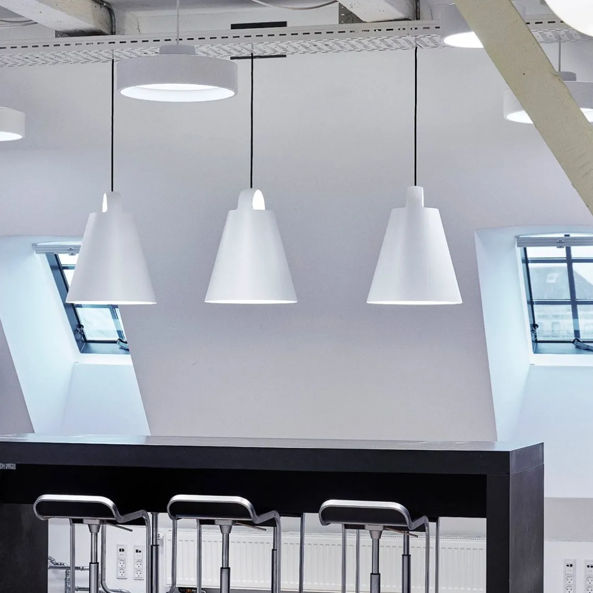 La suspension émet une lumière vers le bas douce et confortable. La forme conique et l’intérieur dépoli peint en blanc assurent une distribution homogène de la lumière. L’ouverture sur le dessus de la suspension offre un éclairage décoratif de la partie supérieure voûtée de l’abat-jour : une fois allumée, la suspension conserve toute l’expression de la forme visuelle qu’elle arbore lorsqu’elle est éteinte.