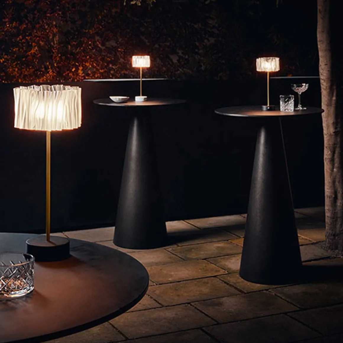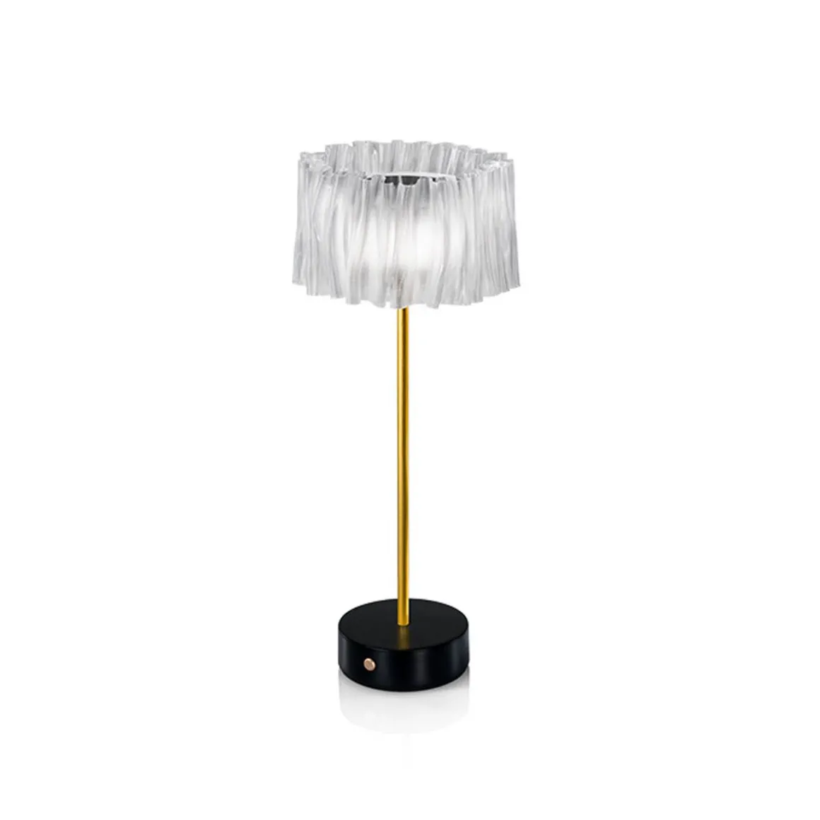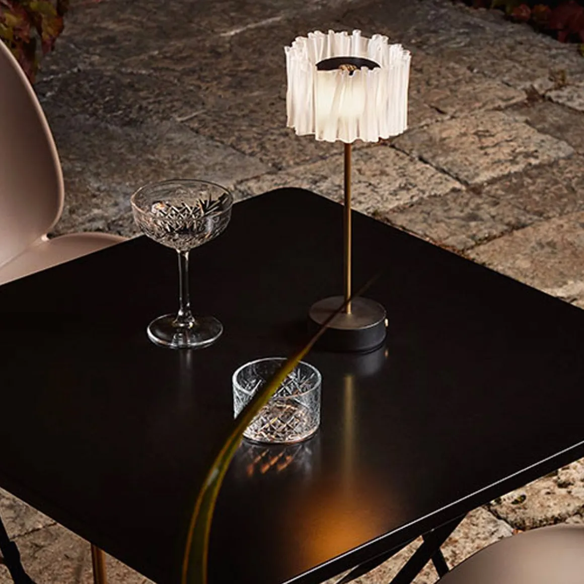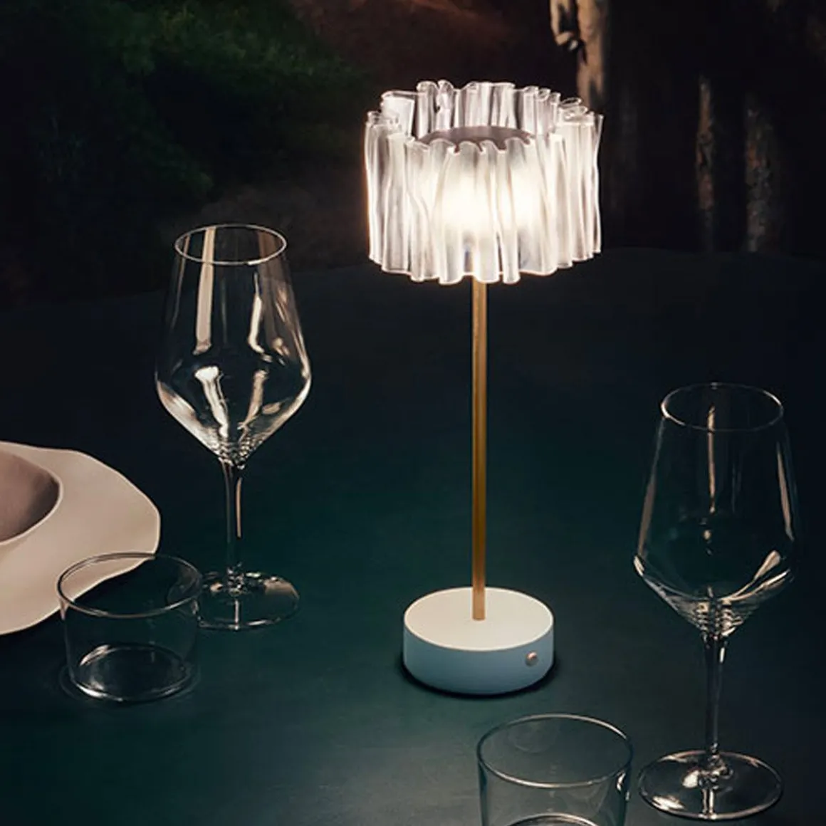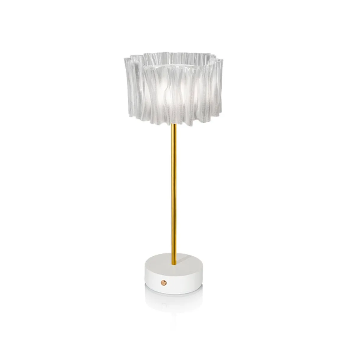 Accordéon est né de l’exploration de Marc Sadler des possibilités infinies offertes par les technopolymères de Slamp. Qu’elle évoque le plissé d’un tissu ou le soufflet d’un accordéon, cette collection marque pleinement l’ouverture d’un nouveau fil narratif contemporain, où design, mode, savoir-faire et technologie se tendent la main dans un lien indissoluble. Dans sa version de table à piles rechargeables, il se compose d’un diffuseur transparent avec une finition blanc satiné – pour une émission lumineuse uniforme – une base en blanc ou noir mat et une tige, en aluminium anodisé satiné semi-mat, capable de donner stabilité à la lampe.Parfait seul, pour illuminer un dîner en tête à tête, ou à placer en série dans la mise en place d’un événement. La batterie a jusqu’à 60 heures d’autonomie et peut être rechargée sur une base de chargement multiple.