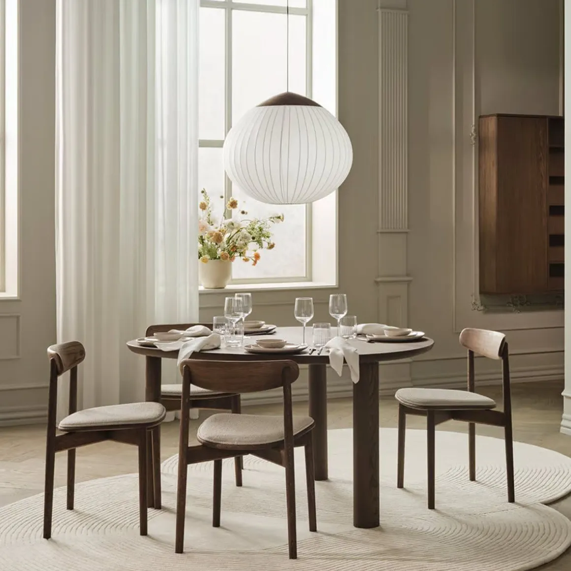 Acorn de Bolia par 365° North. Silhouette organique et séduisante, les détails subtils en chêne certifié FSC® ajoutent une touche de chaleur au design de la collection Acorn.