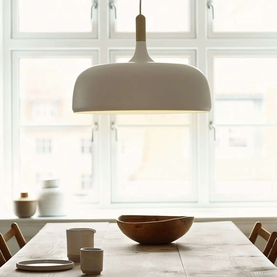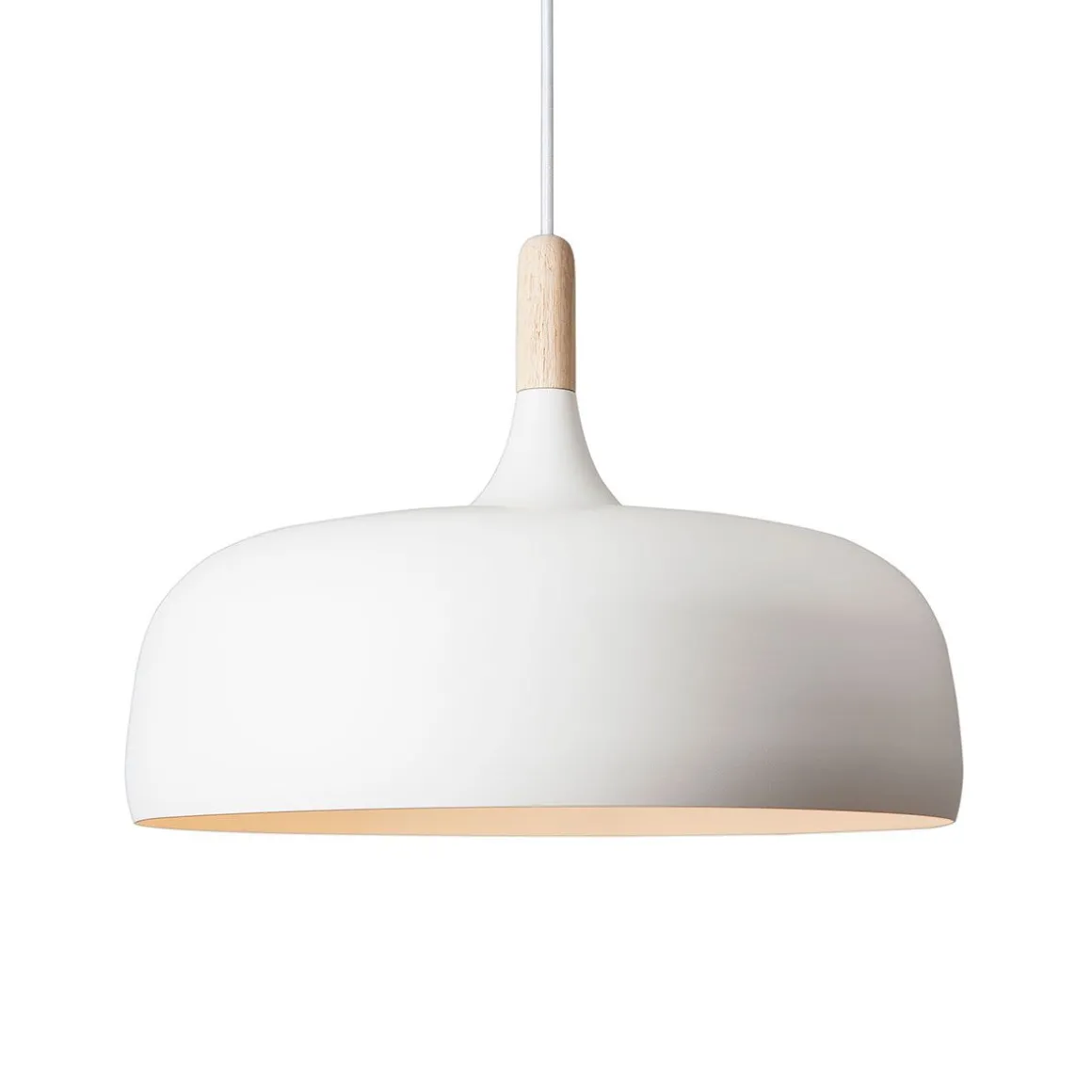 Acorn est une suspension en forme organiquement construit à partir de la combinaison d’une partie en bois de chêne et d’ éléments en aluminium peints. La lampe est inspiré par les forêts d’automne nordiques et la forme du gland de chêne.