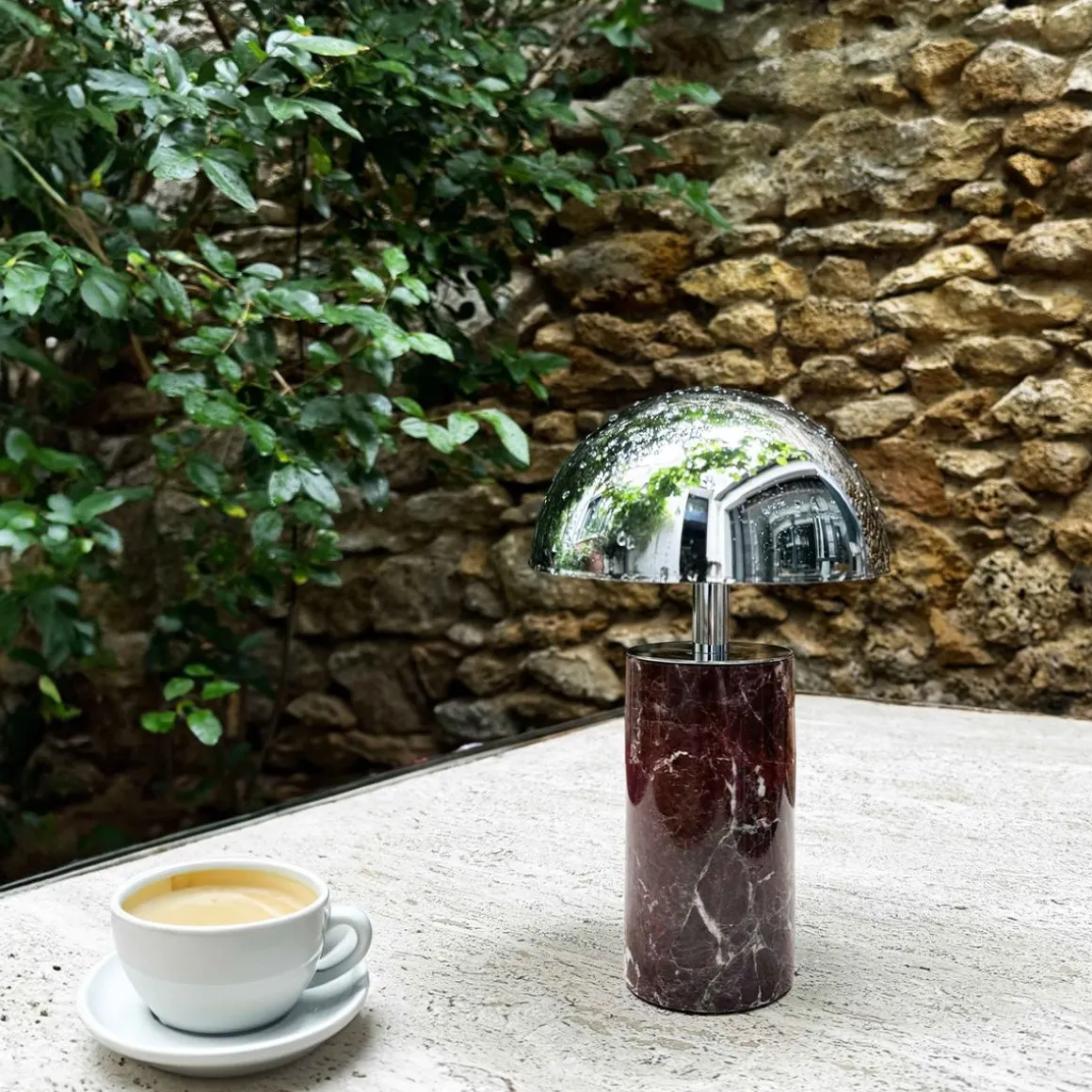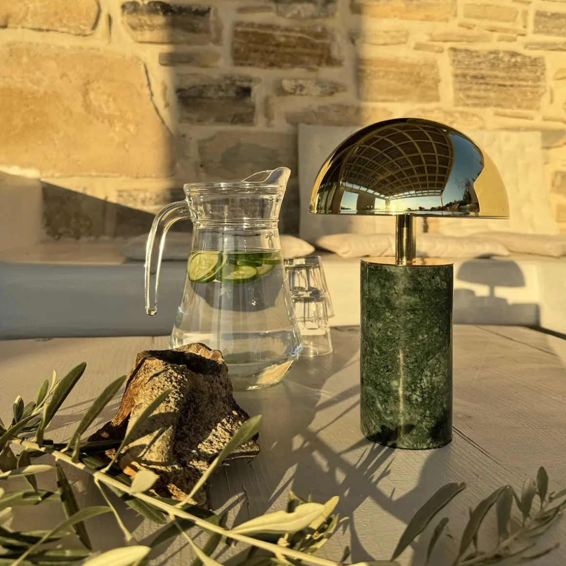 Une lueur Nomade. Éclairez vos soirées d’une douce magie avec la lampe ADEI. Mariant l’élégance du marbre à la modernité de l’acier, elle vous accompagne partout, du salon à la terrasse. Parfaite pour vos dîners estivaux, ADEI transforme chaque table en un havre de lumière et de raffinement.