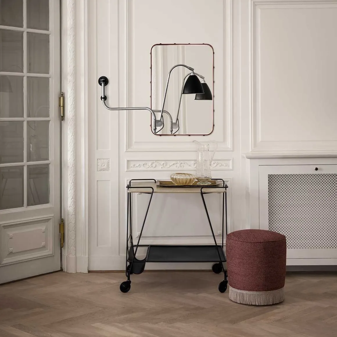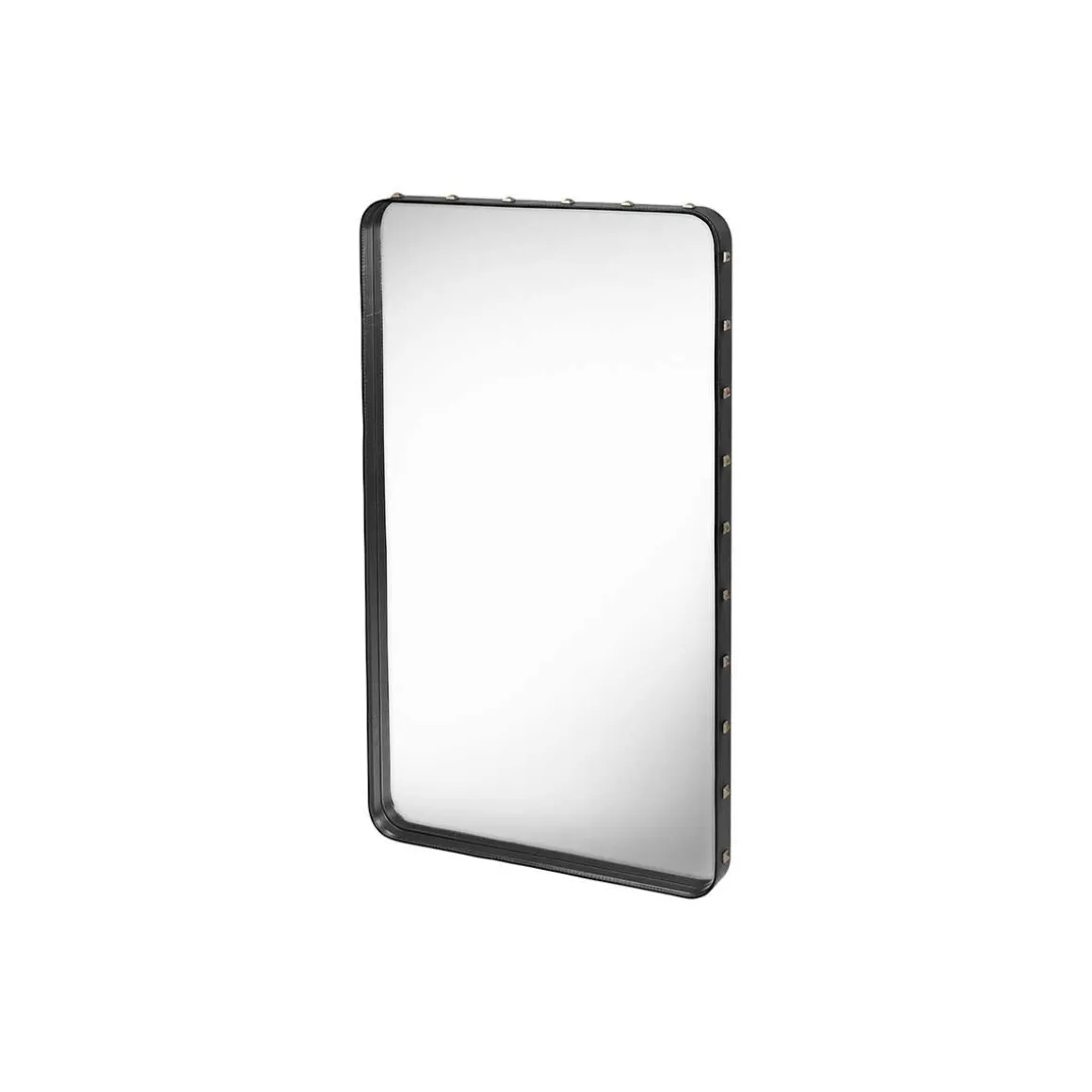 Adnet Miroir Mural Rectangulaire S&M de Gubi par Jaques Adnet. Le Miroir Rectangulaire Adnet est issu d’un partenariat entre le designer Jaques Adnet et une célèbre maison de couture française dans les années 1950. En appliquant les connaissances de la maison de couture et la haute qualité du cuir à la pensée novatrice et à la vision du design de Jacques Andet, les deux parties ont créé une série de designs intérieurs remarquables. Parmi eux, le miroir rectangulaire en cuir d’Adnet clouté de rivets en laiton bruni sur les bords, un détail caractéristique de l’œuvre d’Adnet.
