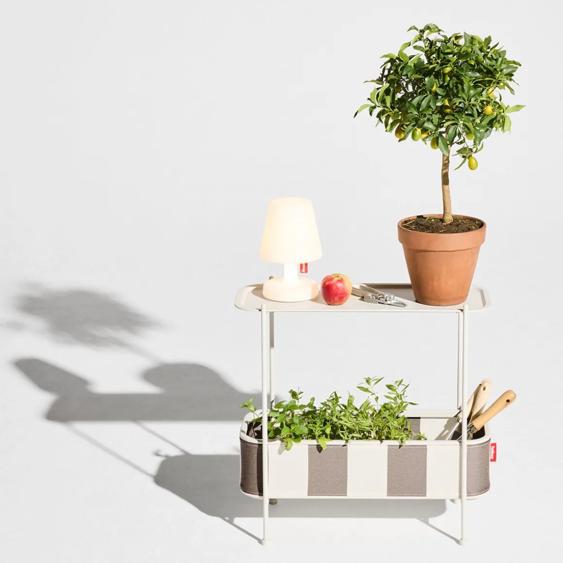 Adoreganizer de Fatboy. Un organisateur pratique et multifonctionnel, pour l’intérieur et l’extérieur. L’Adoreganizer, comme son nom l’indique, est un organisateur dont vous tomberez immédiatement amoureux. Ce chef-d’œuvre polyvalent combine un design élégant à des solutions de rangement astucieuses. Que vous vouliez ranger vos ustensiles de cuisine, exposer des plantes ou créer un mini-bar, l’Adoreganizer s’adapte sans effort. Avec son design Fatboy caractéristique, il trouve sa place dans toutes les pièces, à l’intérieur comme à l’extérieur. Parfait pour mettre en valeur votre bougeoir ou pour enfin donner une place à vos magazines éparpillés. Vous pouvez ranger des objets dans la boîte, mais aussi utiliser le couvercle comme un plateau pour exposer vos objets préférés. L’Adoreganizer n’est pas seulement un plaisir pour les yeux, il est aussi très pratique. Son cadre en acier robuste se monte en quelques minutes avec seulement six vis. Elle s’est salie ? Pas de souci, la housse s’enlève facilement et peut être lavée à la main. Grâce à son design ingénieux, vous pouvez choisir comment l’aménager : placez la boîte en haut ou en bas. Positionnez le couvercle sur le dessus ou déplacez-le pour l’utiliser comme plateau. Avec ses patins de protection sous le cadre, vos sols ne risquent aucune rayure, où que vous le placiez. Et bien sûr, l’emblématique étiquette rouge Fatboy est bien présente.