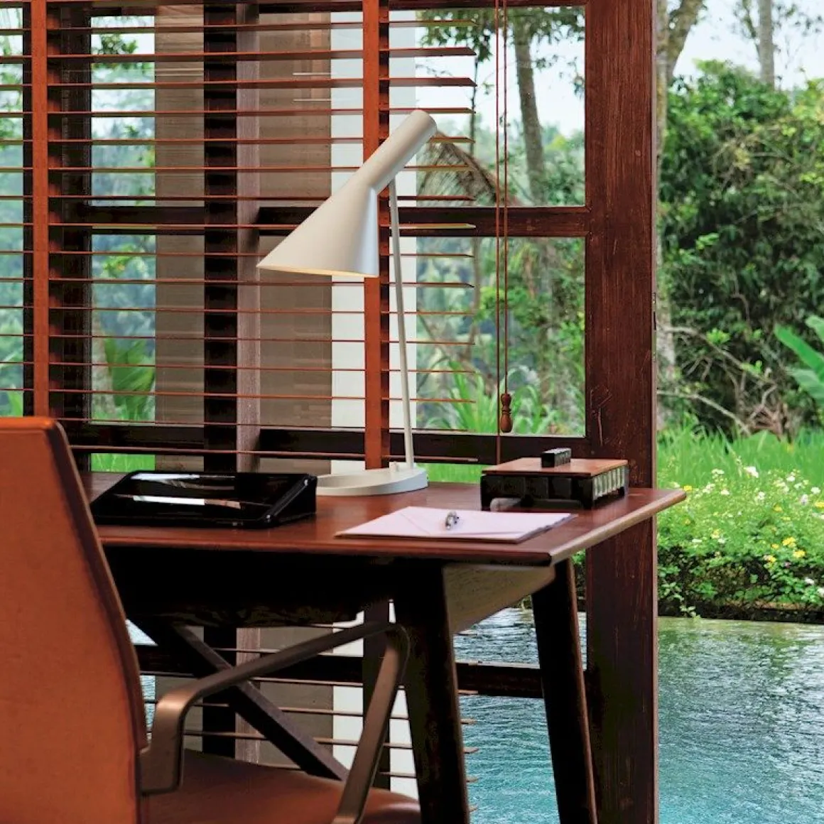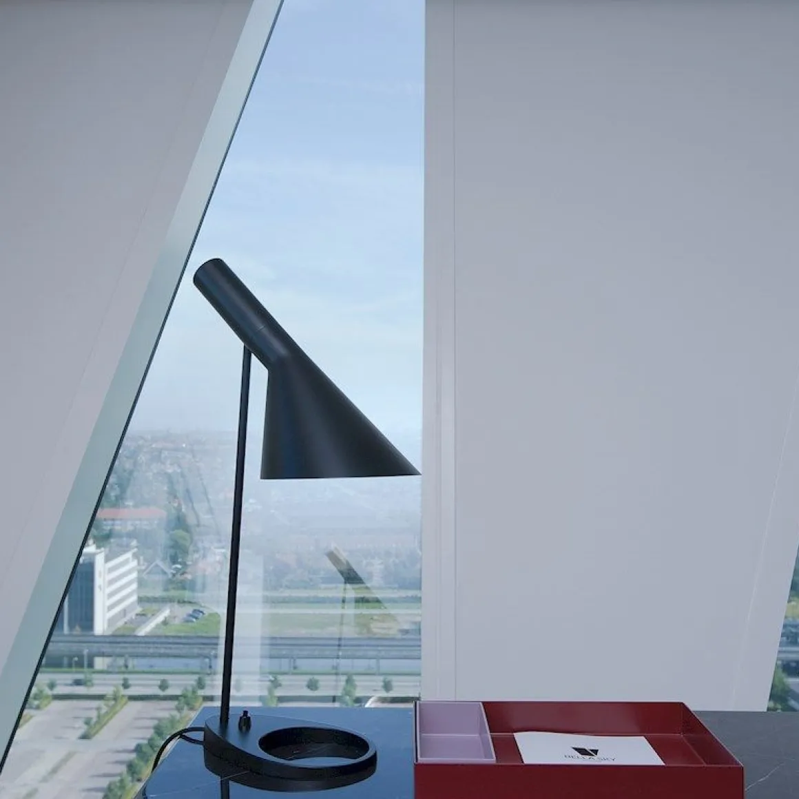 Dessinées par Arne Jacobsen en 1960 pour le SAS Royal Hôtel à Copenhague (Radisson Blu), les lampes AJ sont obtenues une renommée mondialecomme des icônes du design dans l’industrie de l’éclairage. La forme asymétrique particulière de la tête de la lampe de table AJ détermine ses caractéristiques d’éclairage. La tête est orientable. L’intérieur de l’abat-jour est peint en blanc afin de rendre la lumière plus douce et confortable. L’orifice dans le socle de la lampe souligne l’élégance et la légèreté du design. Grâce à son expression unique, ce luminaire reste un classique moderne. Disponible en trois couleurs (blanche, noire, graphite), cette lampe de table trouvera facilement sa place chez vous !