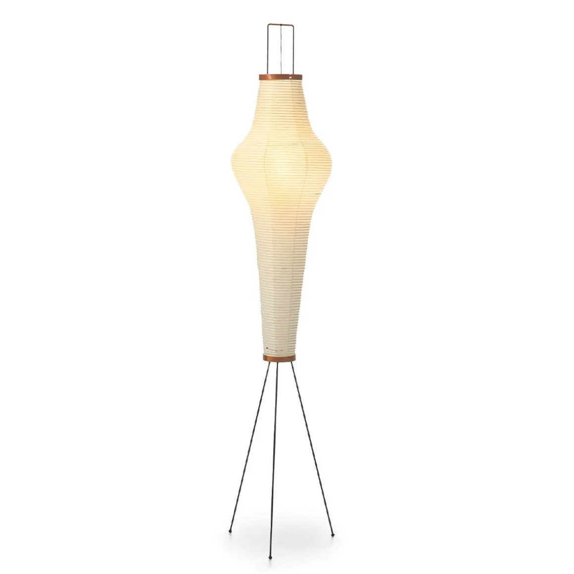 Les Akari Light Sculptures (1951) d’Isamu Noguchi (1951) sont une série de luminaires faits main en papier washi traditionnel par des artisans japonais. « La magie du papier retransforme l’électricité froide en la lumière originelle – le soleil. » (Noguchi)