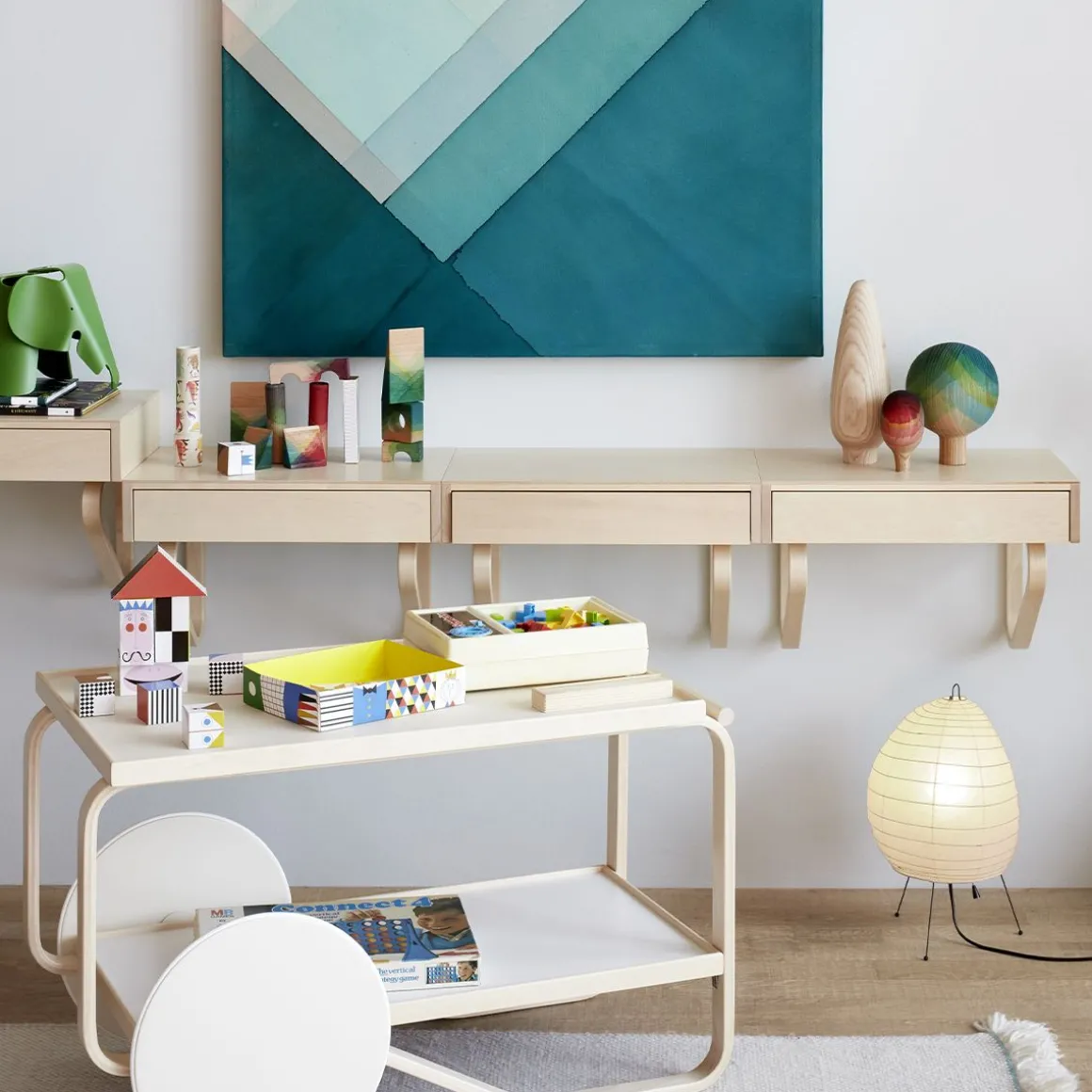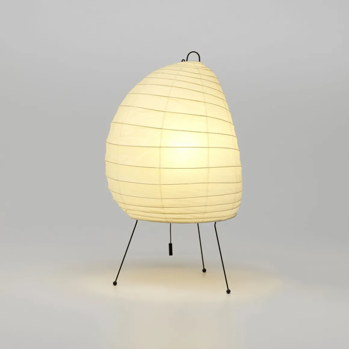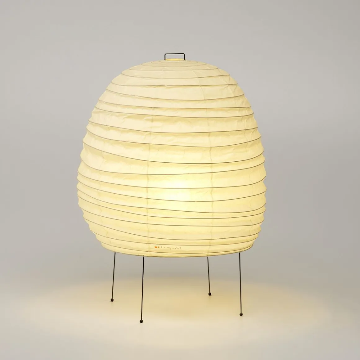 Les Akari Light Sculptures (1951) d’Isamu Noguchi (1951) sont une série de luminaires faits main en papier washi traditionnel par des artisans japonais. « La magie du papier retransforme l’électricité froide en la lumière originelle – le soleil. » (Noguchi)