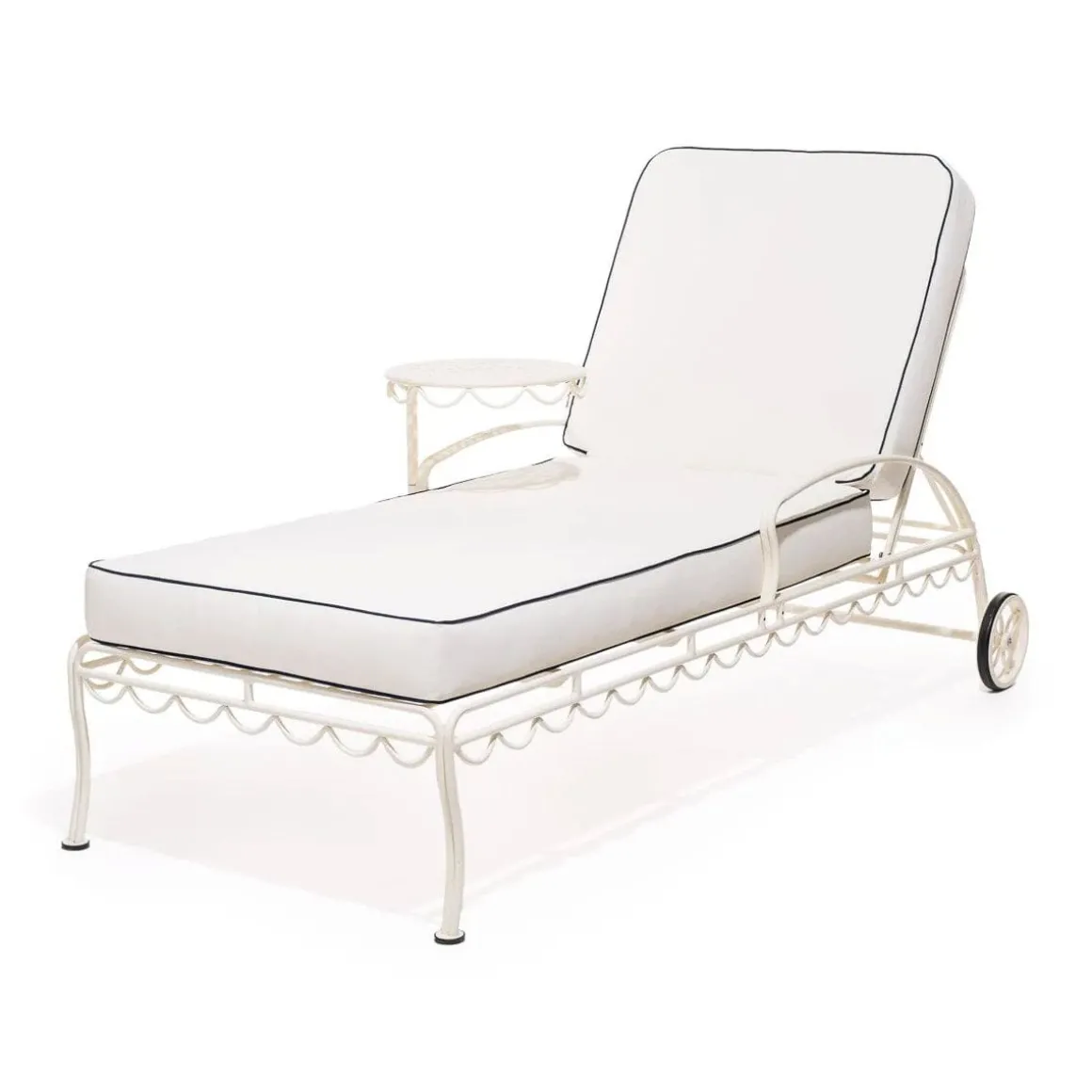 AL Fresco de Business & Pleasure. Pièce maîtresse de la collection AL Fresco, la chaise longue avec table pivotante incarne l’alliance rêvée du travail et du plaisir. Malgré son charme nostalgique, sa qualité et sa fonctionnalité sont parfaitement adaptées à la vie moderne. Conçue pour un usage quotidien et professionnel, elle est plus large qu’une chaise longue standard, avec des coussins épais et remplaçables et une table à la hauteur idéale. Toutes ces caractéristiques ont été développées avec soin. Transformez votre chaise longue en un havre de paix grâce à notre housse haut de gamme, fabriquée en Pleasuretex®, notre tissu exclusif et résistant aux intempéries. Dotée d’un fond en maille respirante et facile à retirer, elle s’adapte parfaitement à toutes les chaises longues Business & Pleasure.