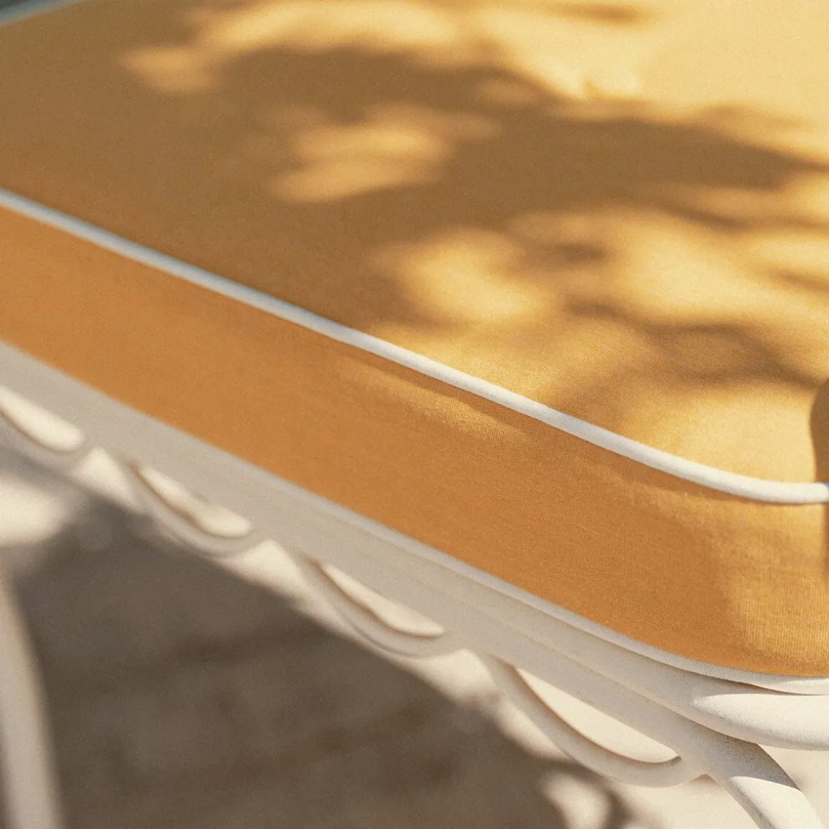 Coloris : Blanc antique/ mimosa avec bordure blanche, Blanc antique/ rose poudré avec bordure rouge, Blanc antique/ vert avec bordure vert foncé, Blanc antique/ Rose rayé bistro avec bordure rose poudré