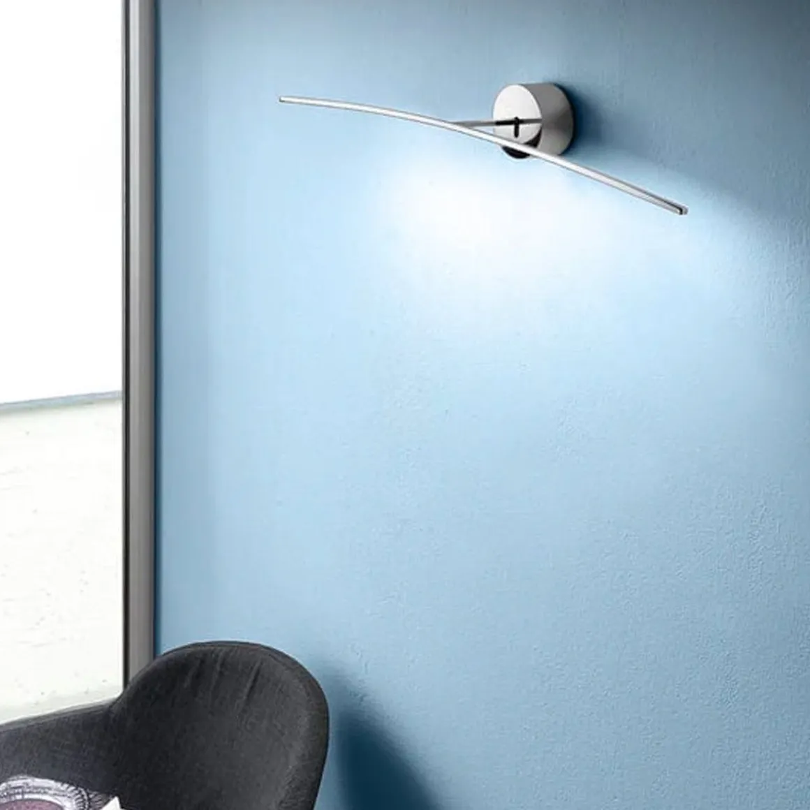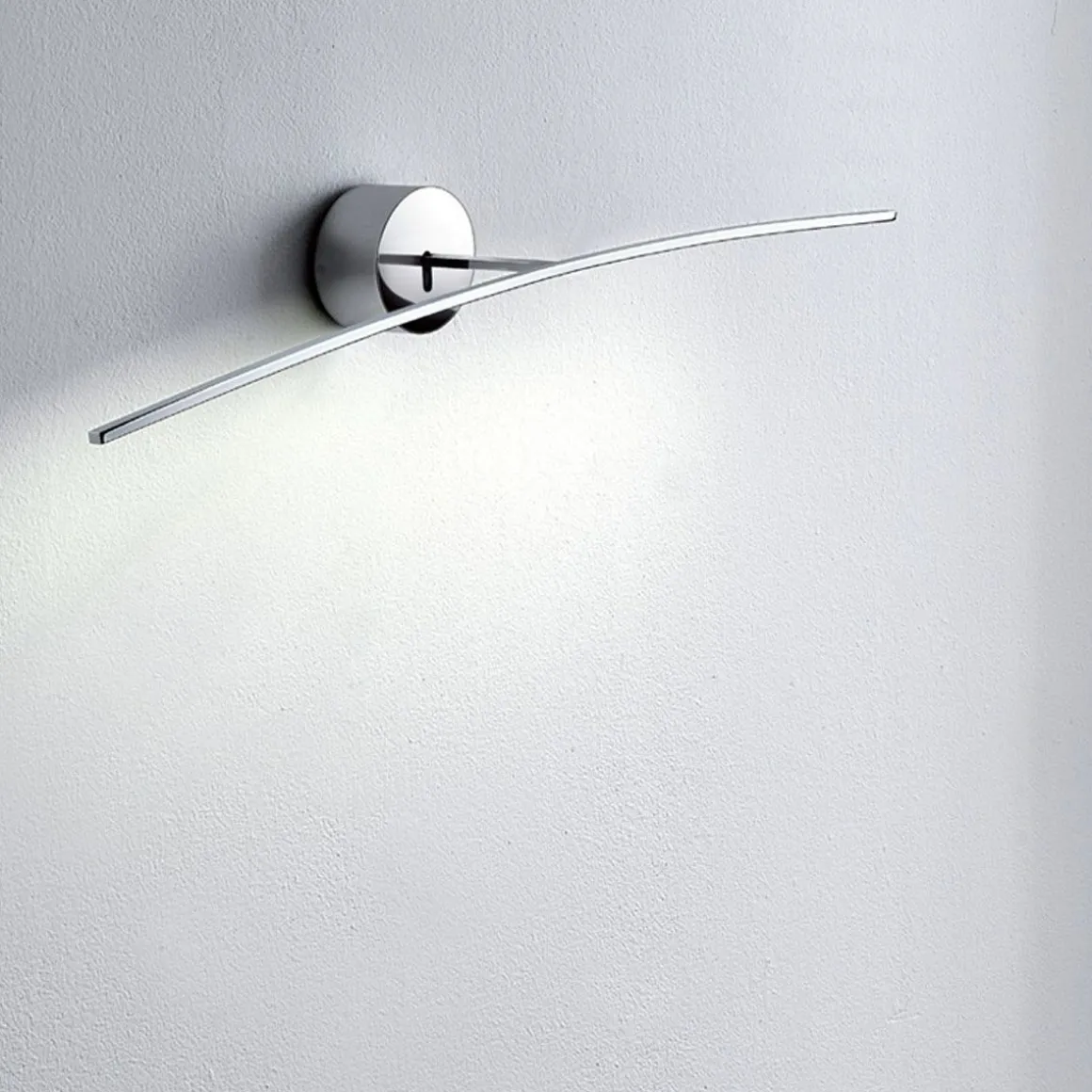 Albatros de Icone par Marco Pagnoncelli. Applique courbée, orientable pour lumière directe ou indirecte, réalisée en profilé de laiton 7×7 mm. Micro-rubans LED à haute efficacité lumineuse.