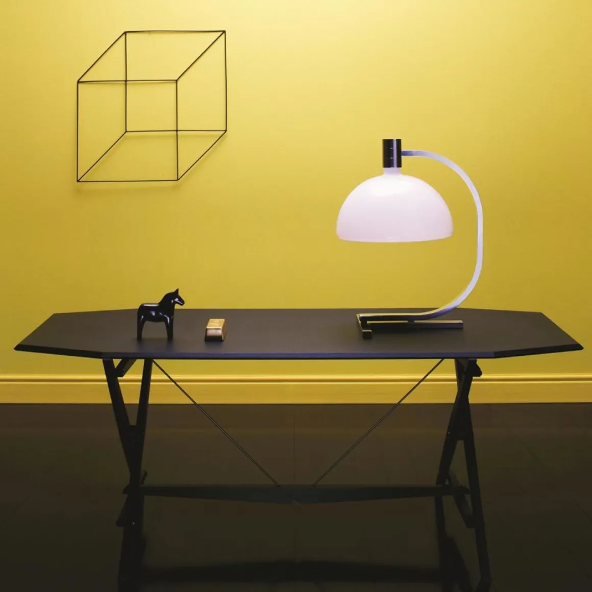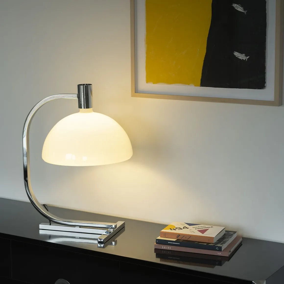 La collection Albini AM/AS représente la philosophie rationaliste de l’architecte milanais. Un design 1969 qui combine les formes linéaires avec l’extrême qualité des matériaux utilisés, comme le verre soufflé des diffuseurs. Le but est de gérer les différents volumes de l’espace avec un seul design : plafond, mur, sol et table.