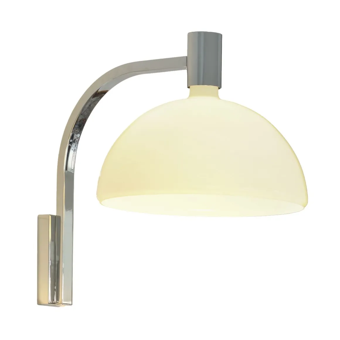 La version applique est née du même concept modulaire de la collection AS43C, qui se distingue par le bras en métal chromé qui représente le fil conducteur de la collection. La forte présence de cette applique souligne les caractéristiques du diffuseur en verre opale.