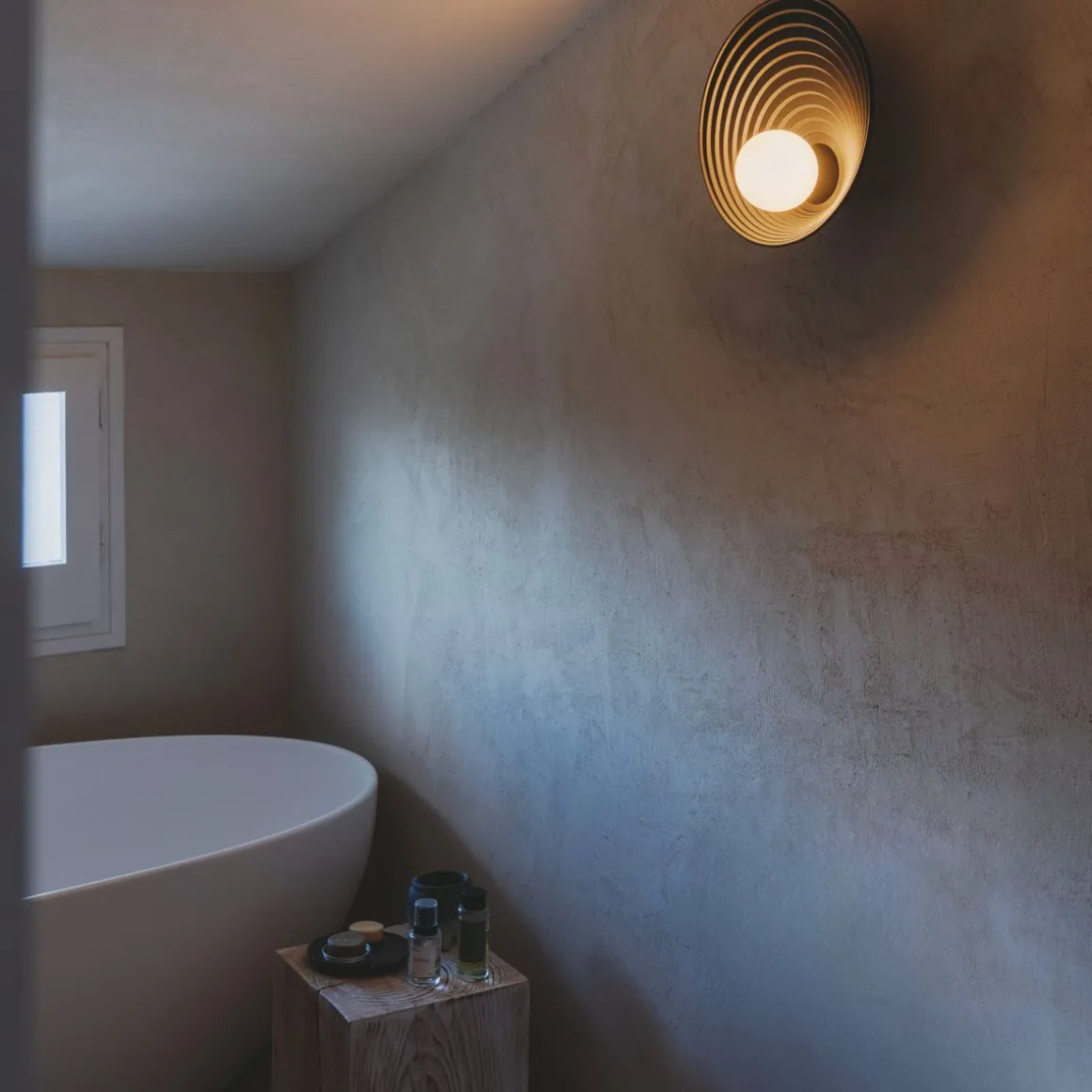 Albor de Milan iluminación. Albor illumine chaque espace avec la magie et la sérénité de l’aube. Cette applique murale circulaire est dotée d’un captivant diffuseur en verre soufflé qui, lorsqu’il brille, évoque le lever du soleil, offrant une douce lueur à l’environnement. Fabriquée en céramique selon un procédé artisanal, cette pièce insuffle un caractère unique à son design. Albor illumine votre espace en procurant la sensation chaleureuse d’une nouvelle journée. Il est fixé au mur à l’aide d’aimants en néodyme, ce qui facilite sa mise en place.