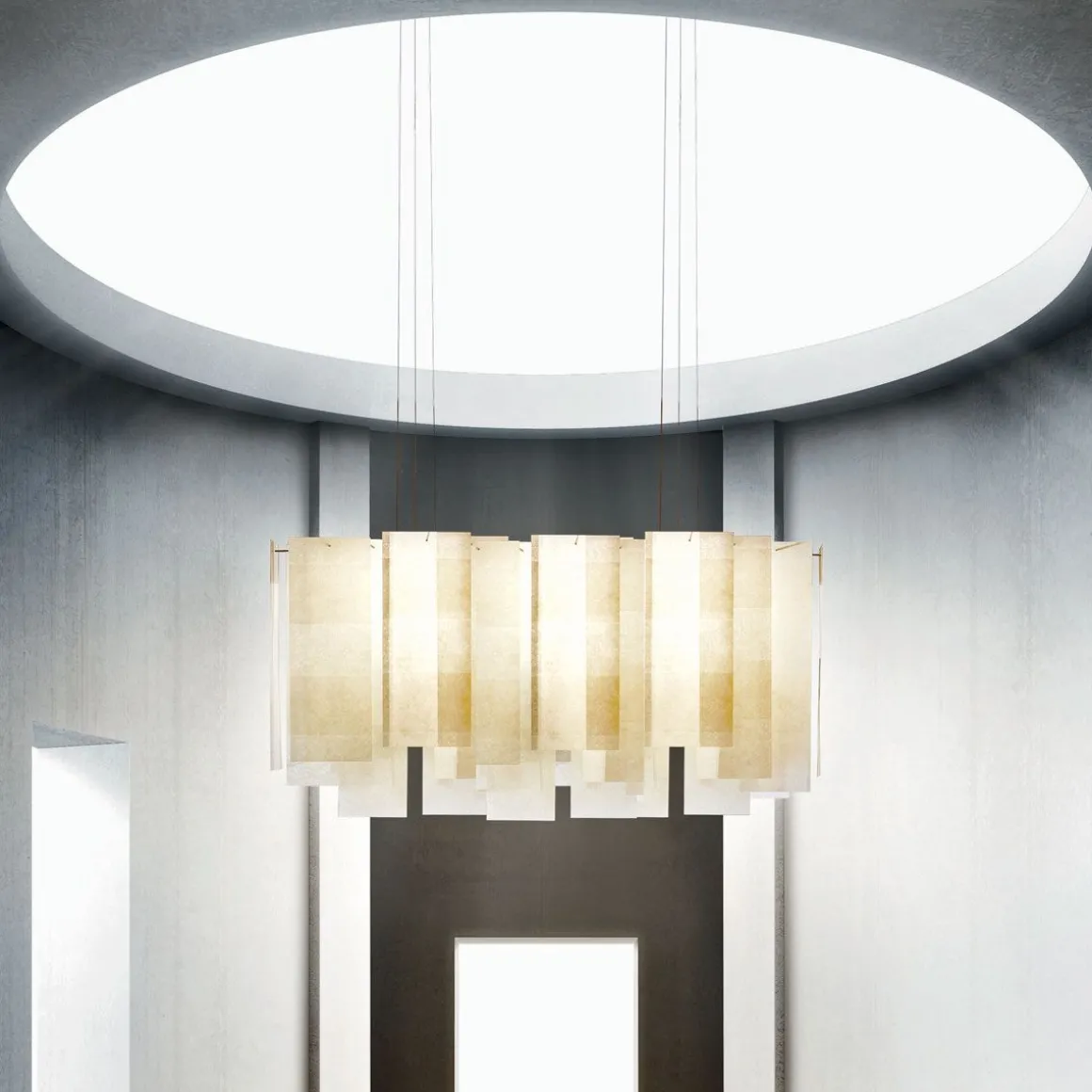 Alexandra est un nouveau concept de lampe, créé par des feuilles de fibre de verre en chevauchement, donnant lieu à une lumière captivante à la fois légère et transparente. Conçu par Enrico Franzolini, Alexandra apporte ce design dans le monde du business, en utilisant de plus grandes feuilles pour construire une lampe avec une présence théâtrale puissante, mais qui reste gracieuse et aérée. Cette version est parfaite pour les grands paramètres tels que les halls d’hôtel, les salles de réunion ou les lieux de rassemblement.