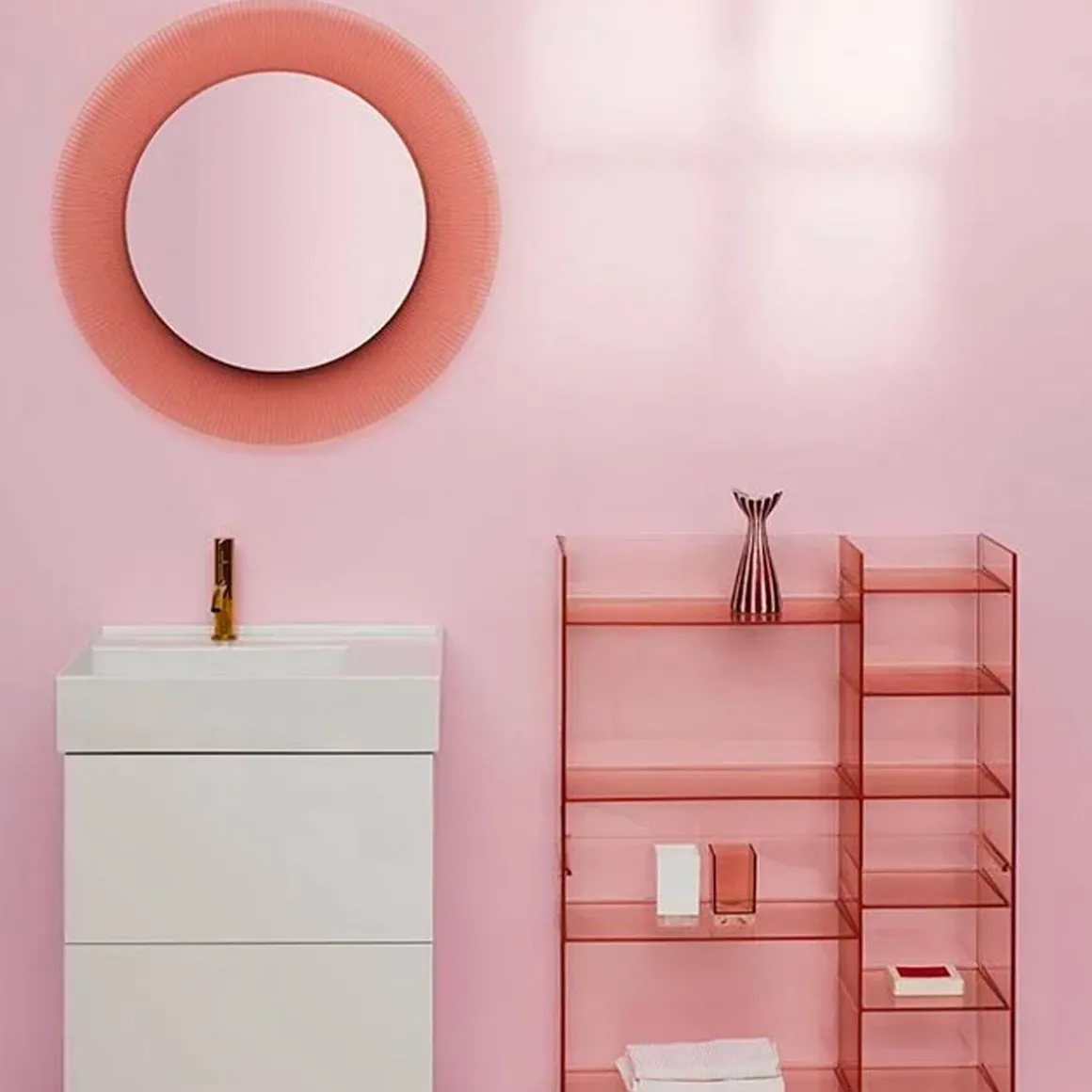 2013 marque le début de la collaboration avec Ludovica et Roberto Palomba, avec lesquels Kartell a développé une collection complète pour la salle de bains (Kartell by Laufen). Une sélection d’accessoires et de meubles de complément en PMMA de différentes couleurs, ils sont aussi à l’aise dans cette pièce que dans d’autres zones de la maison, fidèles comme toujours à la transversalité la plus absolue des produits Kartell. All Saints est un miroir rond entouré d’un cadre qui présente un effet plissé de manière à créer, quand il est éclairé, un jeu de réfractions voilées. Un trait graphique, bien défini évoquant un héritage qui puise son inspiration dans l’une des plus grandes icônes de la collection Kartell : la lampe Bourgie, au style baroque incomparable. Avec la possibilité de passer des transparences aux chromages or et argent proposés, ce miroir est un objet de design extrêmement polyvalent et transformiste, qui s’intègre à des réalisations contemporaines et essentielles aussi bien qu’excentriques et anticonformistes.