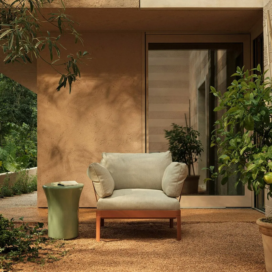 AluAlu de Kristalia par Luciano Bertoncini. Réédition du système d’extérieur conçu par Luciano Bertoncini en 2014 avec un cadre en aluminium thermolaqué 100% recyclable et des lattes en plastique. Canapés, fauteuils, tables et chaises longues faciles à monter et démonter. Les dossiers et les accoudoirs sont faciles à installer grâce à un système de couplage rapide.