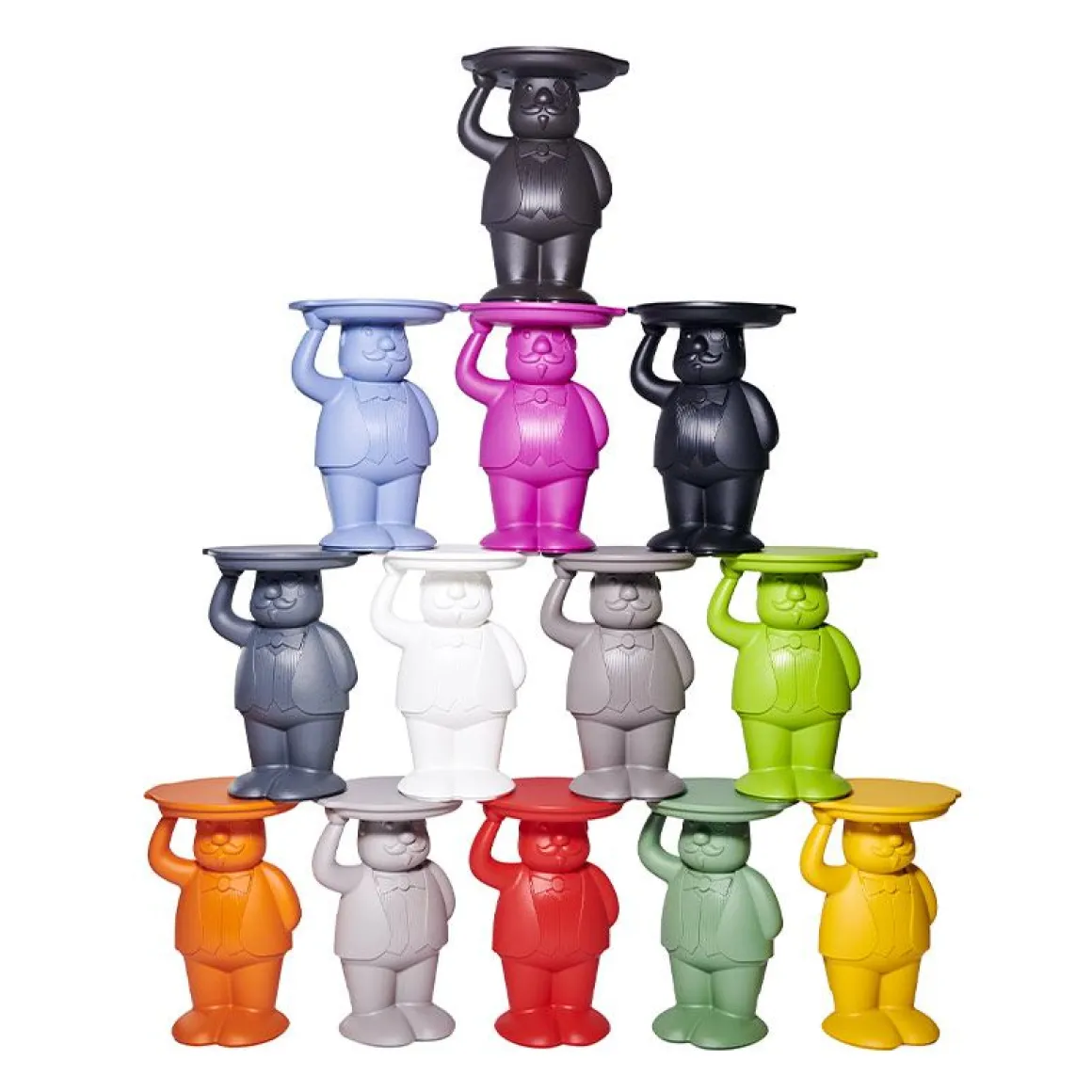 Ambrogio est le majordome le plus polyvalent, le plus coloré et le plus soucieux de l’environnement qui soit : une table de service idéale dans les projets résidentiels, les vitrines, les magasins et dans tous les environnements qui ont besoin d’aide pour servir et d’un présentoir. Ambrogio est un produit aux airs familiers, à tel point que Francesco Favaretto s’est inspiré de la moustache de son père pour le créer. Par ailleurs Ambrogio aime l’environnement : pour la première fois, nous avons utilisé un nouveau mélange plastique dans lequel EcoAllene est également présent à hauteur de 30%, qui jusqu’à présent n’avait jamais été utilisé dans le monde du design. EcoAllene est composé à 100% de matériaux recyclés à partir de cartons Tetrapack, donnant ainsi une seconde vie au plastique autrement destiné aux décharges ou aux incinérateurs. Ambrogio est la combinaison parfaite entre un design comique et un produit sérieux, et il est aussi éthique : nous nous sommes poussés à créer un design durable pour les personnes et l’environnement qui nous entoure, entrant de plus en plus dans la voie vertueuse de l’économie circulaire.