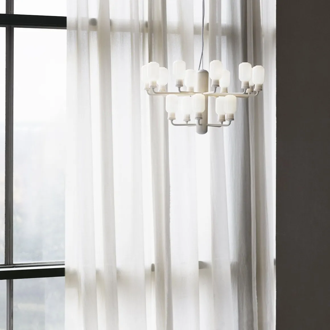 La forme ovale simple et la lueur des lampes Amp sont une référence évidente aux anciens amplificateurs à tubes des années 1960. La lumière chaleureuse et accueillante, qui caractérise également les lustres classiques, combine Amp avec un langage moderne et audacieux, ce qui donne au lustre un sentiment nostalgique et contemporain.
