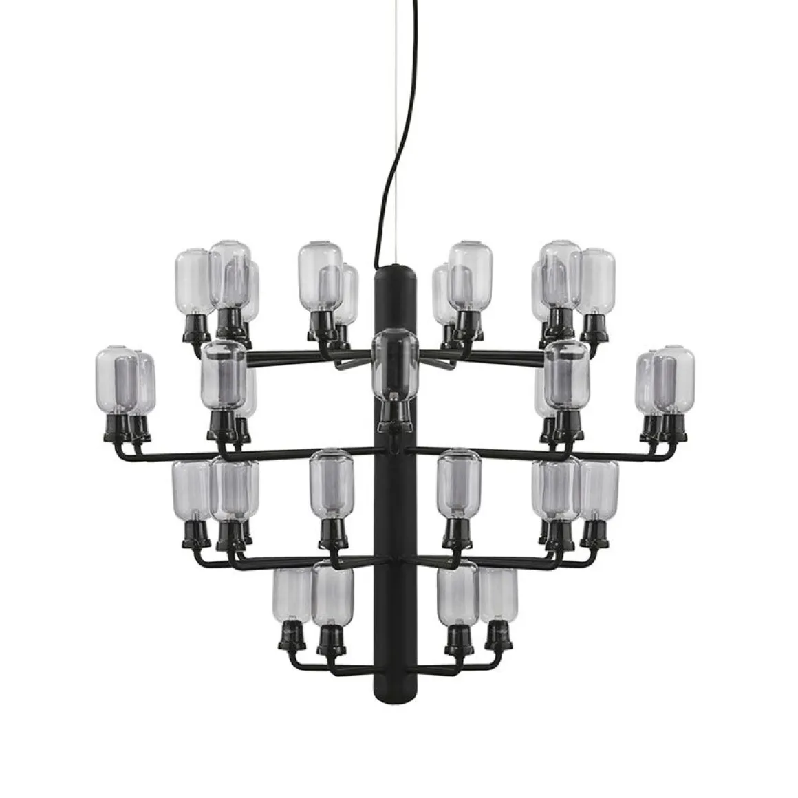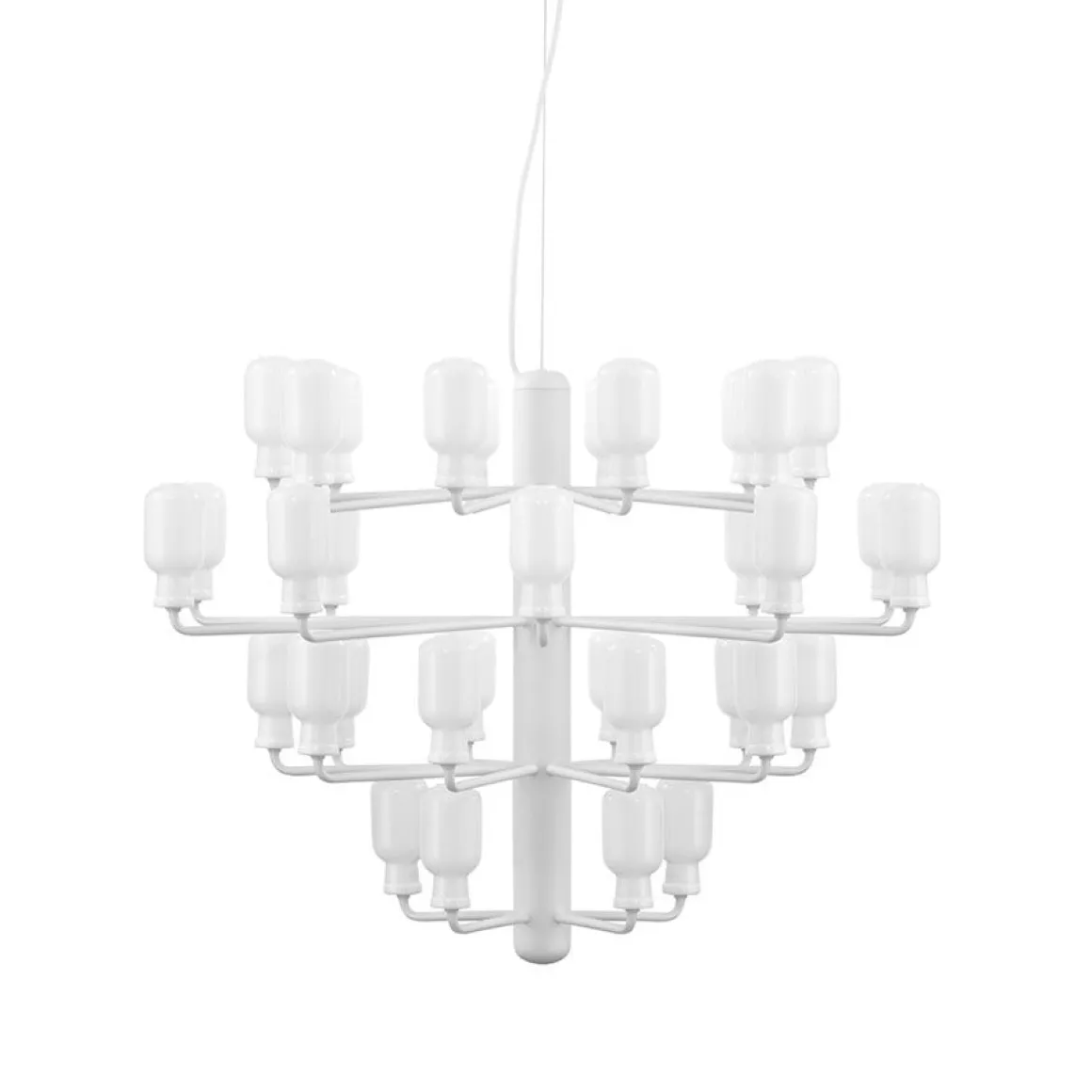 Le lustre Amp existe en deux tailles, avec 15 ou 35 bras, et il est disponible en trois couleurs. Un ajout parfait à la réception d’une entreprise, à un couloir ou à une table à manger, où le design accrocheur peut vraiment briller.