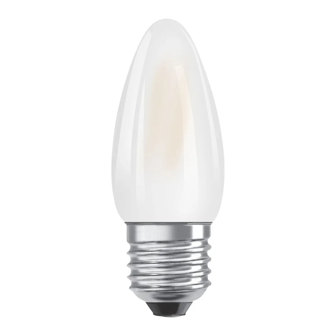 Ampoule E27 flamme dépoli 4.8W avec une technologie de « filament » LED innovante. Très faible consommation d’énergie, allumage instantané, peut remplacer facilement les lampes standard. Idéal pour les installation décoratives, éclairage général, utilisation en extérieur uniquement dans les luminaires d’extérieur appropriés.