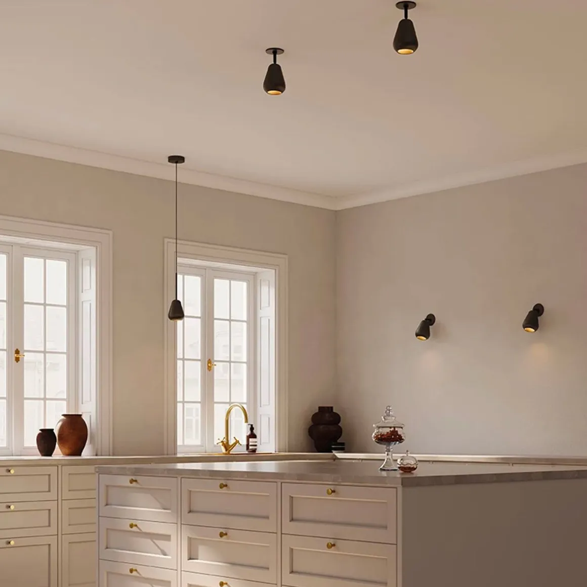 Anoli de Nuura par Sofie Refer. Anoli Spot Surface est idéal dans les pièces où des spots intemporels de haute qualité sont nécessaires. L’abat-jour en métal sur mesure fait référence à la silhouette élégante des gouttes de pluie et est soigneusement placé sur un bras réglable. Anoli Spot Surface peut être monté au plafond ou au mur, où il projettera une lumière de travail sans éblouissement sur son environnement immédiat. Placez Anoli Spot Surface dans les pièces où un bon éclairage de travail est souhaité ou dans les environnements où l’espace est limité.