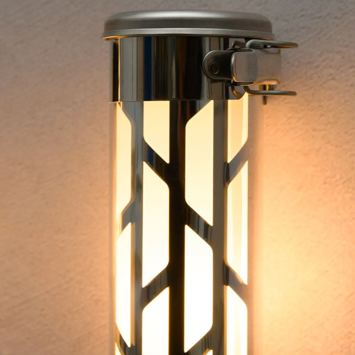 Matériaux : Tube en polycarbonate qualité cristal, Colliers et flasques en inox marin, Grille perforée laquée