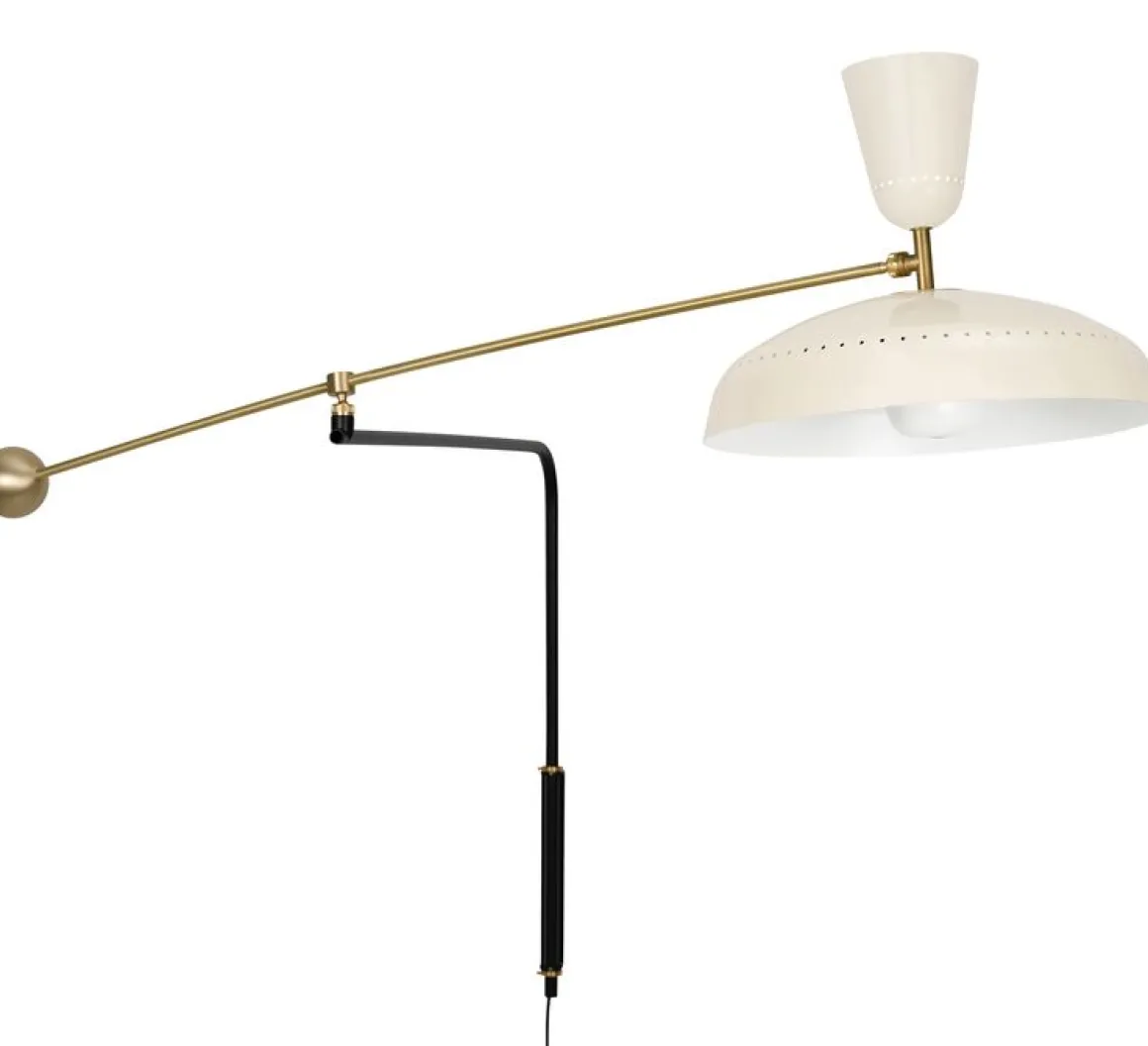 On ne présente plus le G1, ce luminaire pensé par Pierre Guariche en 1951 et devenu un marqueur du design des années 1950. Sa version applique se distingue par un abat-jour en métal repoussé et deux sources lumineuses apportant un éclairage direct et indirect. Orné d’une boule de laiton massif pour contre-poids, son bras également en laiton repousse les limites de la gravité. Cette applique se prêtera parfaitement à votre coin lecture ou bien à côté d’une table pour dîner dans une ambiance douce et chaleureuse. Son abat-jour spectaculaire s’offre à vous en quatre finitions : rouge vermillon, noir, blanc et craie, à vous de choisir celle qui viendra sublimer votre intérieur ! Il est mis en lumière par deux ampoules pour un éclairage homogène et confortable. Existe aussi en versions lampadaire (deux tailles disponibles) et suspension. Tous nos luminaires sont fabriqués, assemblés et emballés dans notre usine à Châtillon-sur-Saône dans les Vosges.