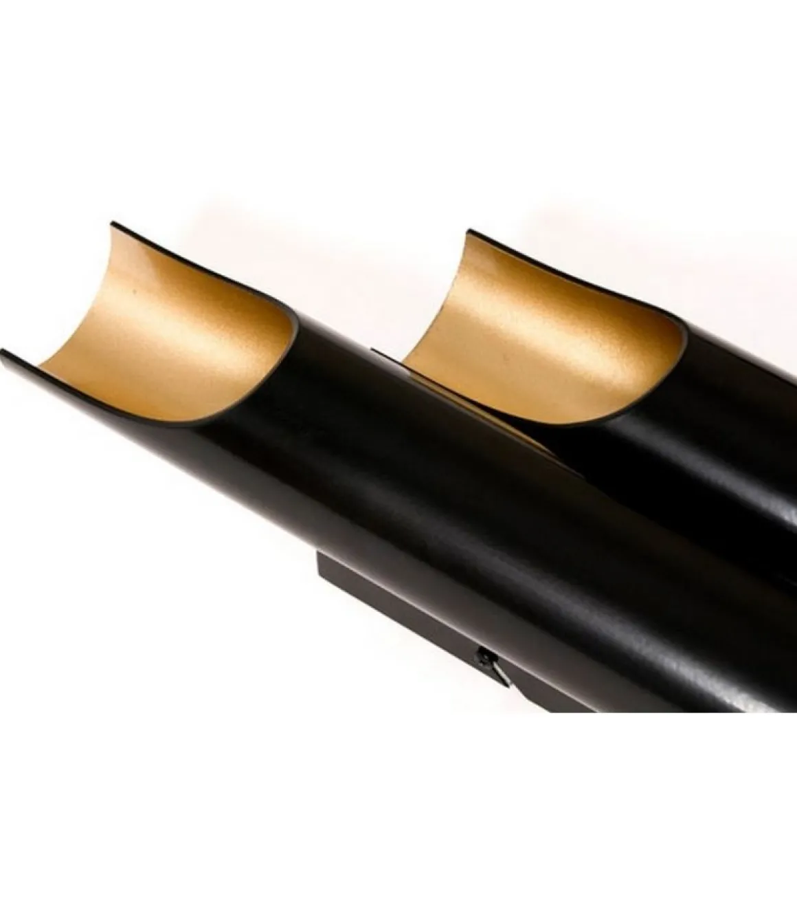 Galliano 2 conçue par DelightFULL est une applique en fer avec un extérieur noir mat et une finition intérieure en peinture en poudre dorée.
