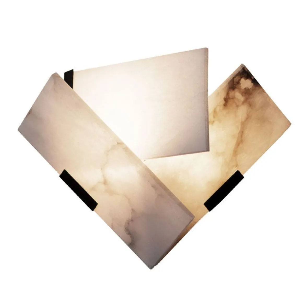 Composée de trois plaques d’albâtre rectangulaires montées sur des attaches en métal noir.