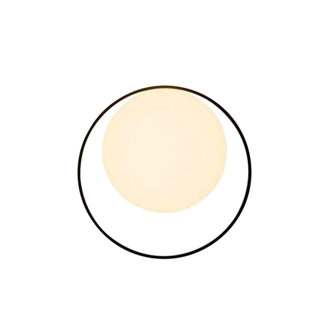 Applique métallique à lumière directe et indirecte. A-3722 : Emplacements intérieurs, il est composé de polyéthylène beige translucide et d’un anneau décoratif en métal. Disponible en finitions noir et or satiné.