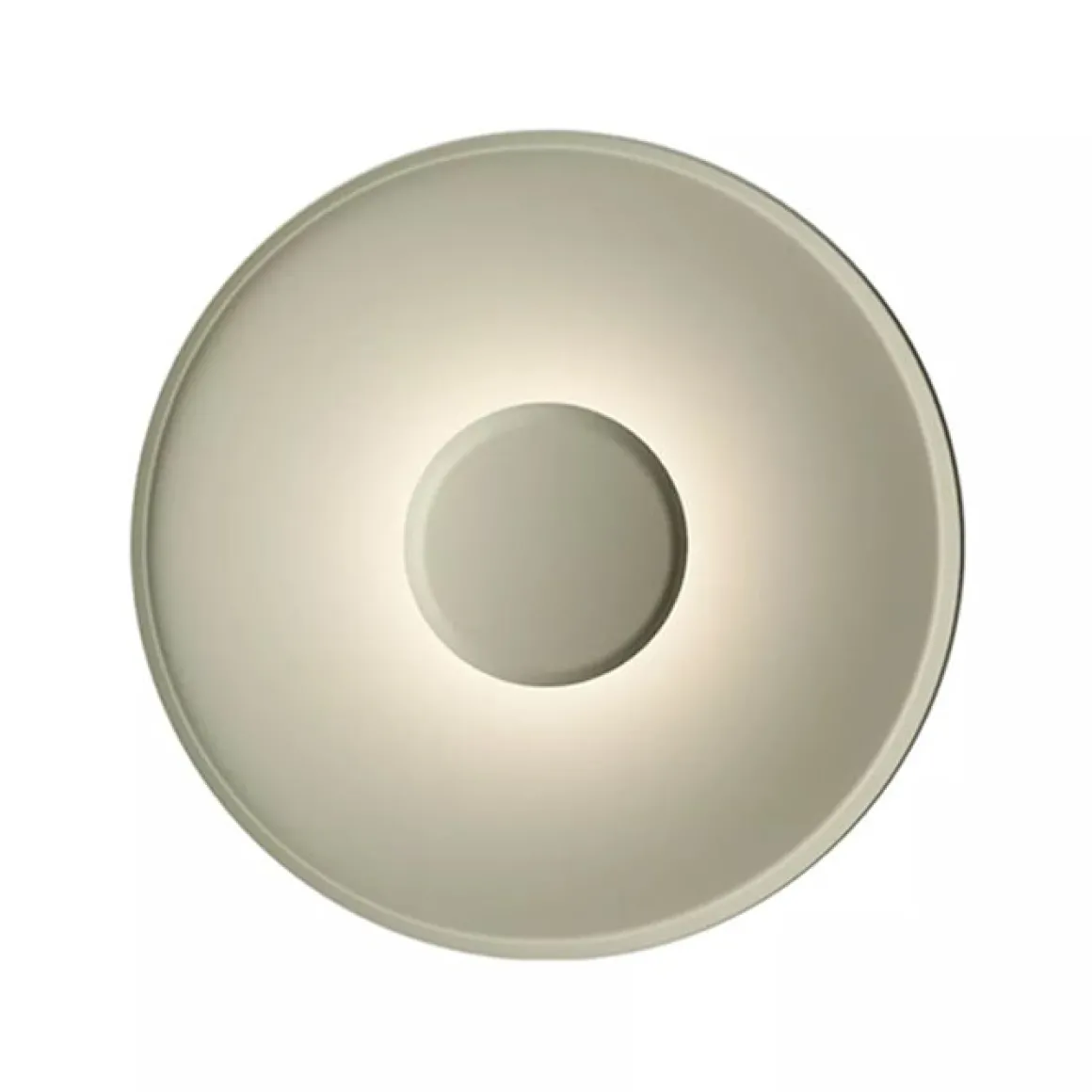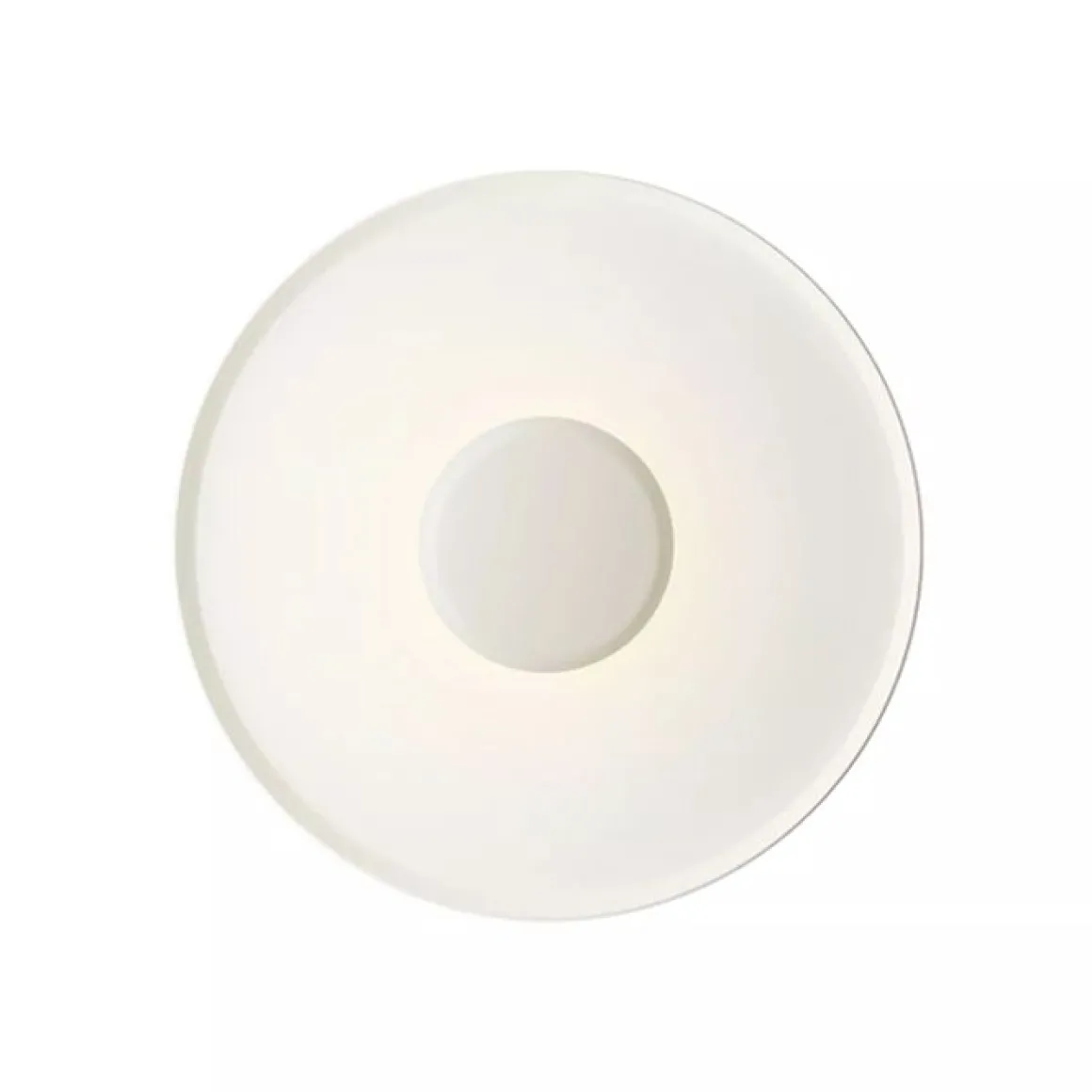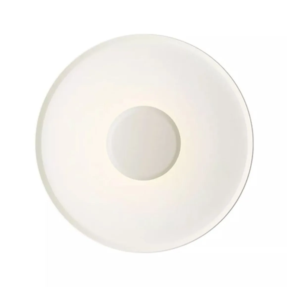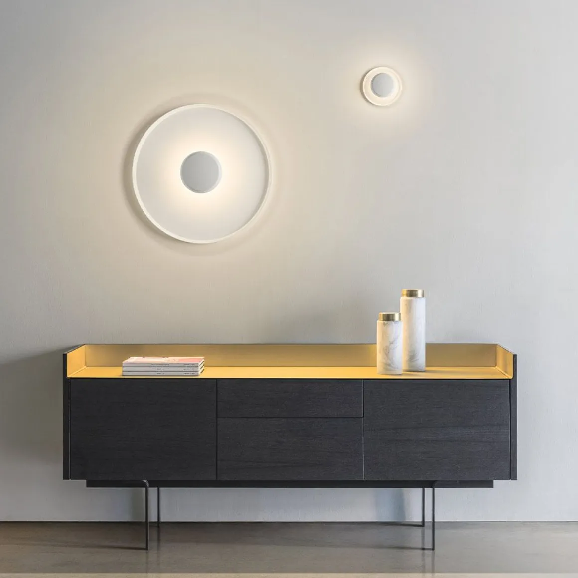 Applique murale Top . La petite sphère centrale réfléchit la lumière sur le disque le plus grand diffuse un effet de halo de lumière homogène et indirecte qui offre une ambiance apaisante La lumière se trouve encadrée par sa propre circonférence. L’applique murale Top, grâce à son design saisissant et minimaliste, agit aussi sur le mur comme un élément d’art abstrait. Fabriquée en aluminium et disponible en tailles mini, petite, moyenne et grande, cette dernière est équipée d’un diffuseur en verre qui émet une lumière générale et directe.